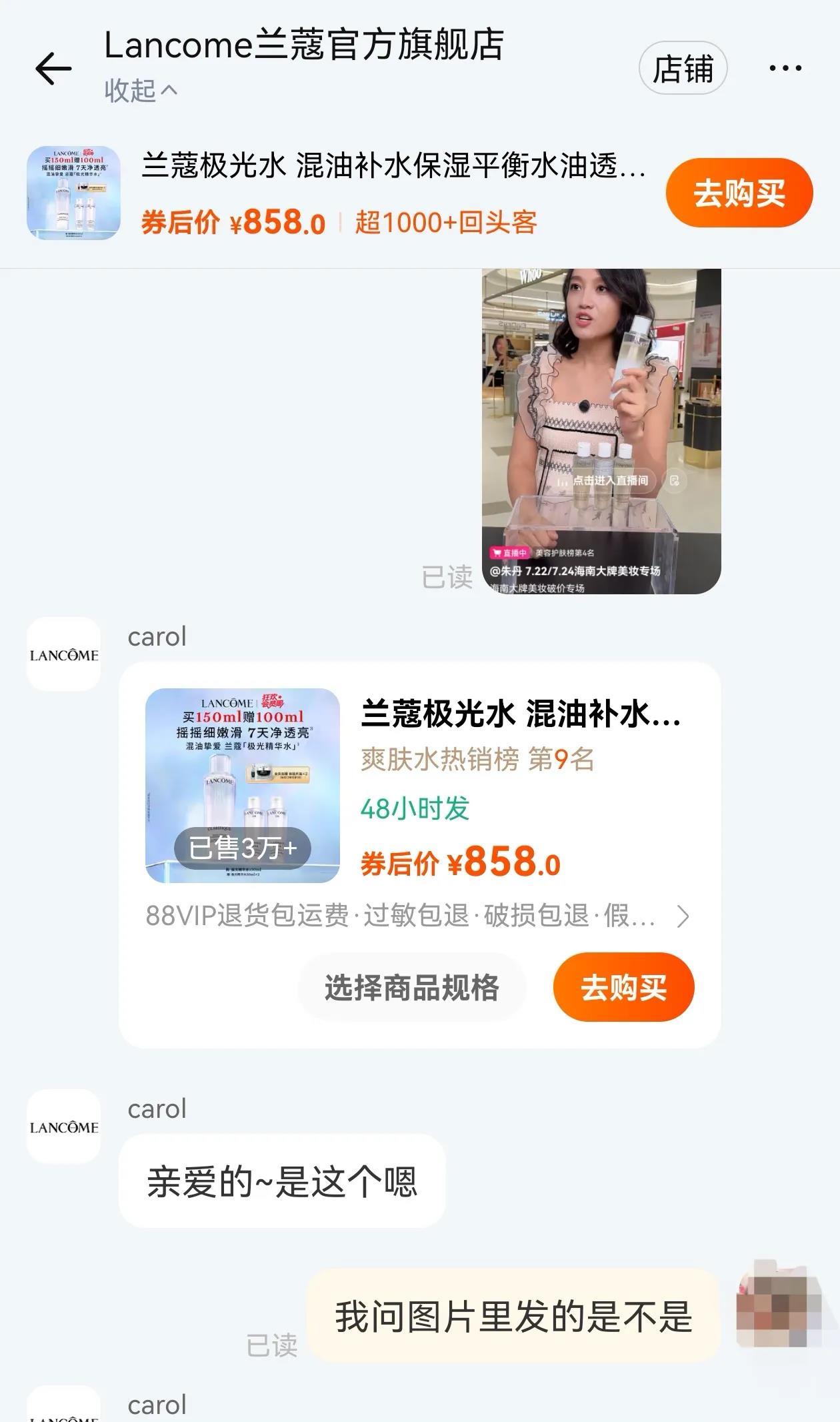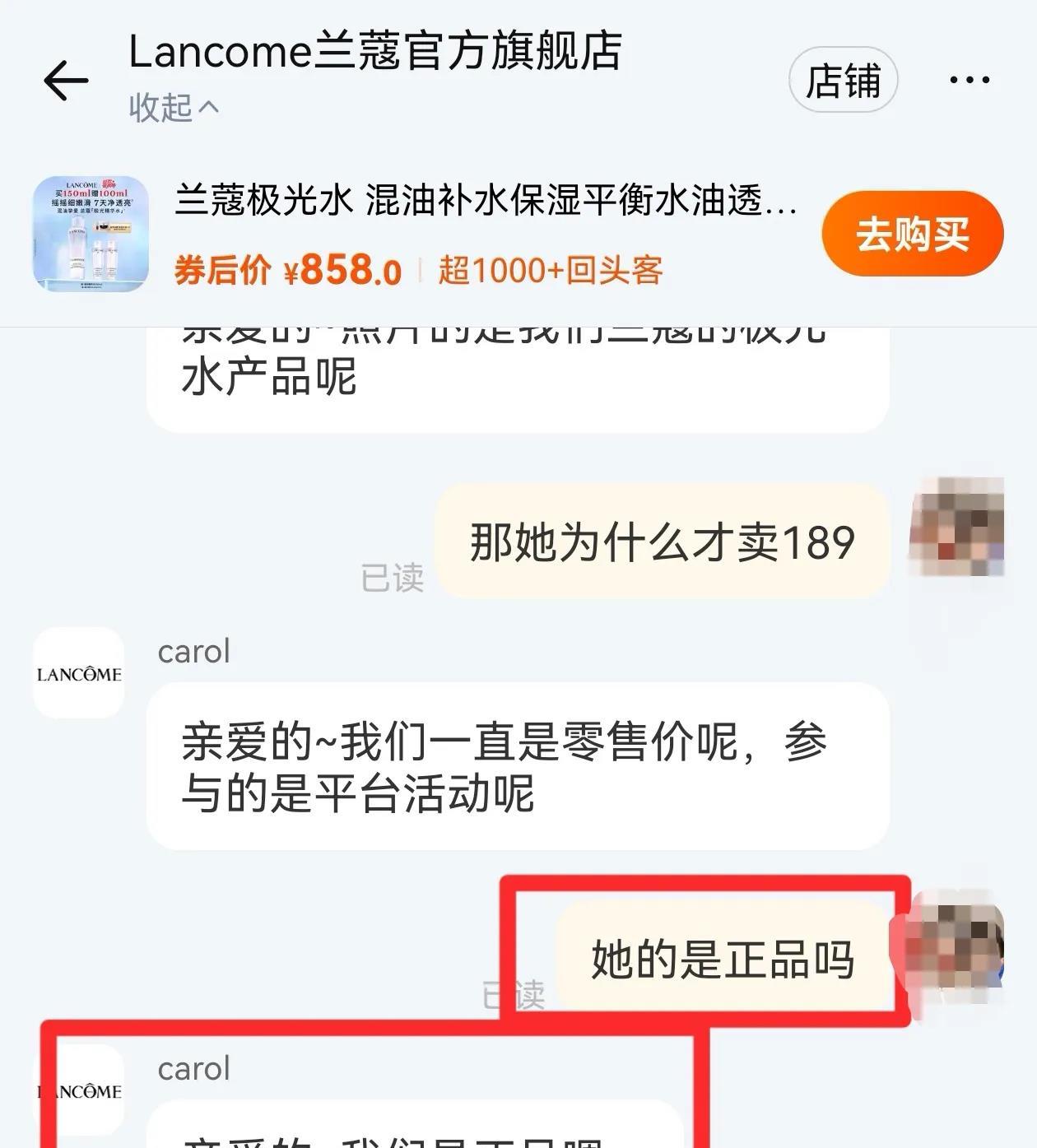 朱丹天塌了! 昨晚朱丹直播带货,网上卖八百多的水她卖189,连官网都不敢明面承认她卖的是不是正品。 兰蔻官网回复: 我们的是正品。 嗯,这句话言外之意大家懂都懂。 朱丹卖得还可开心,几秒钟几百单就没了,还说她送的小样更多,相当于两瓶的量,这差价足足有四倍多,她怎么敢卖的。 当然如果是正品,那顾客是赚到了,朱丹凭本事和兰蔻谈的四分之一价格合作。 大家觉得这价差是正品吗?