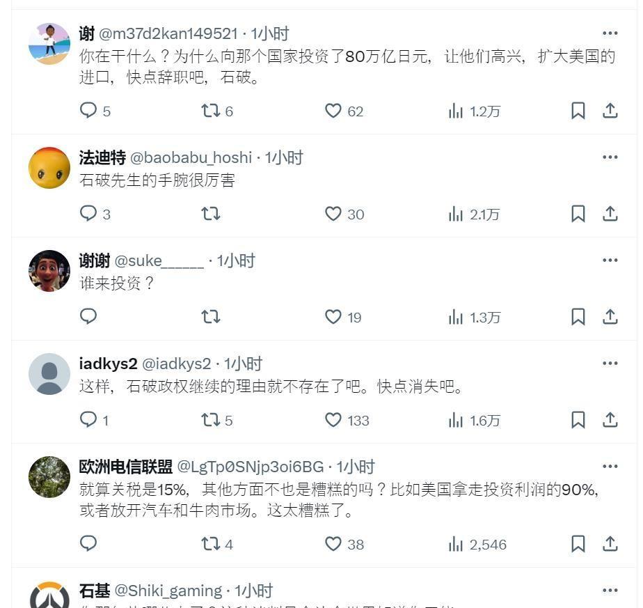 石破茂低头签下“史上最大”美日协议,5500亿砸向美国却换来15%关税,党内逼宫在即,丰田被关税逼向十字路口、农协暴怒,日本首相逐渐丧失对特朗普说‘不’的实质性空间! 7月22日的协议,看似一纸交易,实则是一记重锤砸向日本政治核心。石破茂低头了,日本低头了,所有人都看见了,而特朗普更是笑到了最后。 曾被誉为“最有骨气的首相”,如今却在党内被逼宫,在外被锁喉,连对美国实质性博弈的气力都没了。这不只是一次外交让步,更是一个政权的崩口。 石破茂说,他是在“为国家争取最小的代价”。可现实是,他把日本几十年死守不退的农业市场拱手让出,用5500亿美元买了个苟延残喘的机会。 特朗普在社交媒体上宣布“史上最大美日贸易协议”的那一刻,日本首相府的灯光还亮着,石破茂却已被身后的影子逼到了墙角。 他的政府、他的党、甚至他自己,都已经失去了谈判桌上的主动权。 若说4月时的24%关税威胁还能让人抱有侥幸心理,那么7月7日那封来自特朗普的信,彻底打碎了石破茂的强硬外壳。 “8月1日起实施25%关税”,那是一道最后通牒。他知道,若真让特朗普开打,这个经济已经被物价、债务和人口老龄化拖得气喘吁吁的国家,根本撑不住。 而更现实的是,他的支持率已逼近20%的警戒线,执政联盟刚刚在参议院选举中丢了多数席位,没有人再愿意陪他赌。 石破茂的让步,是在无声的权力斗争中被逼出来的。自民党内的麻生太郎、菅义伟早就按捺不住,那些在选后第一时间要求“总裁辞职”的声音,不再是私下抱怨,而是公开宣战。 7月23日,他紧急会见两位前首相,试图商讨过渡安排,这不是谋划未来,而是安排退场。自民党党章规定,只要过半数议员支持,石破茂就可以被罢免。这个数字,如今并不遥远。 更致命的是,他在党内的说服力已经被这份协议彻底掏空。曾经的“零关税”愿景被狠狠踩在脚下,汽车税降到12.5%听起来像个胜利,实则只是从地狱升到半坡。 大米进口开放,农协炸了锅,30万稻农眼睁睁看着美国大米进入市场,原本770%的关税成了历史。 而这背后,是日本政府主动提交的投降书。特朗普说“美国将获得90%的利润”,却连怎么分都懒得说清楚,石破茂面对记者追问时只答“需研究条款细节”,暴露了日方的被动。 这是一次不对等的交换,是一次彻底的战略退让。5500亿美元投资,说是为了“深化美日经济合作”,实则是为美国选举经济输血。 日本人投入,特朗普拿走成果,还能顺带收割丰田、日立、东京电力的产业链。而对日本来说,这笔投资不仅拖累财政,更可能加速产业空心化。 丰田已在评估将部分产能转移至北美以规避关税风险,日企正在大规模抛售美债,资本市场对这份协议的反应,早已说明一切。 石破茂的政治生命,正在以协议为代价被一点点榨干。他原先拒绝辞职,用“必须完成美日谈判”作为挡箭牌。可如今协议已成,挡箭牌也碎了。 连日媒都在推测他可能于9月内阁改组时下台,自民党议员恳谈会已定于7月31日召开,届时“总裁辞职劝告案”将被正式提出。这场“宫斗”不再藏着掖着,而是摆上了明面。 石破茂不是没有想过对抗。他也曾在7月9日的记者会上喊出“这是赌上国家利益的战斗”,但谁都看得出,那不是决绝,而是垂死挣扎。 他再也不是那个能在党内一呼百应、在国际舞台上据理力争的硬汉首相。如今的石破茂,被逼到连对特朗普说“不”的底气都没有,党内没人挺他,国会不再信他,外界更不会等他。 而这一切,特朗普全都看在眼里。他知道,石破茂已无退路,日本政府已无筹码。这份协议不是谈出来的,是压出来的。 特朗普用威胁、用选票、用贸易杠杆一步步逼石破茂背叛了曾经的底线。协议达成的那一刻,美国股市上涨,日本舆论却哗然。农协、工会、车企、媒体,没有一个站在石破茂身后。 更深远的影响,正在悄然展开。日本社会正在右倾化,参政党等排外势力趁势崛起,打着“日本优先”的旗号,煽动反美情绪。 丰田加速扩大在华产能,日本对华投资增长18%,这一切都说明,产业和资本正在寻找新的出路。日本不再是那个稳定的盟友,也不再是那个在美中之间左右逢源的经济强国。 更大的不确定性还在前方。这份协议的执行,注定波折重重。 车企抗议合规成本占净利润15%,农协发起全国抗议,特朗普的承诺兑现率历来低得可怜。这不是一个结束,而是一串连锁反应的开始。 石破茂还能撑多久?没人能给出确切答案。但可以确定的是,他手中对美国说‘不’的筹码正在急速蒸发。 而一个连实质拒止能力都所剩无几的首相,还能代表谁?还能坚持多久?特朗普已经给出答案,剩下的,只等日本自己揭晓。 参考:特朗普:美日达成“巨大”协议,或是史上最大!—— 2025-07-23 08:44·新派新闻
