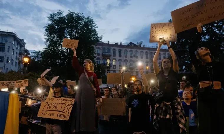仗打了三年多,乌克兰人终于觉醒,包围总统府,要求泽连斯基撤回法案,抗议者当中最多的竟然是女性。 当地时间7月22日,乌克兰总统泽连斯基批准了一项旨在剥夺乌克兰反腐机构独立性的法律,这一削弱反腐机构的做法直接引发了全国的范围的大规模抗议活动,人人纷纷走上街头,高喊口号,特别是乌克兰的女性,他们在战争中失去丈夫、儿子、哥哥和兄弟,她们才是这场战争的最大受害者,也只能是这次抗议活动的主力军。