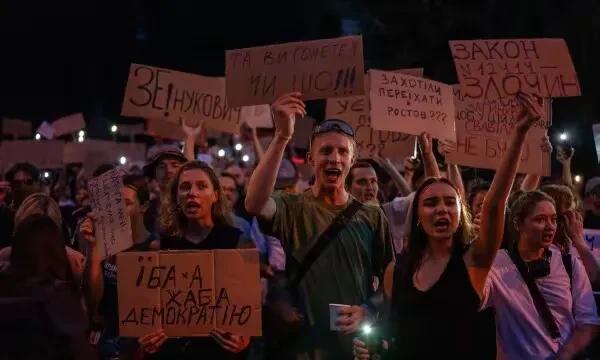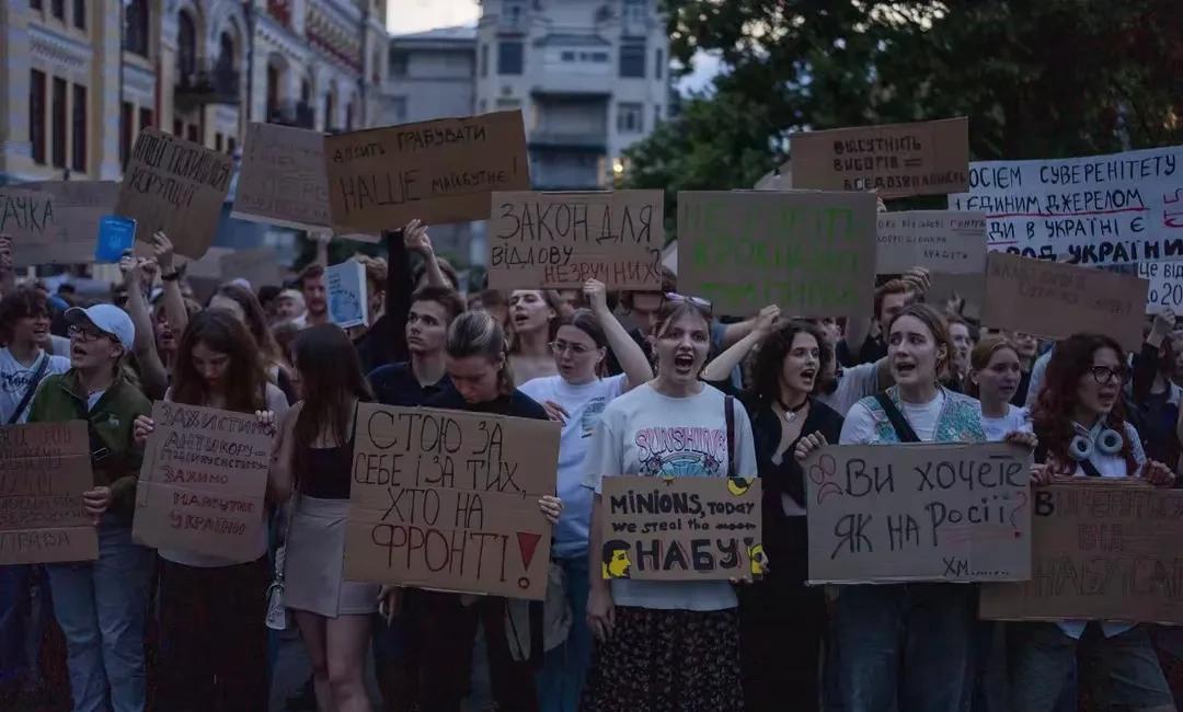 仗打了三年多,乌克兰人终于觉醒,包围总统府,要求泽连斯基撤回法案,抗议者当中最多