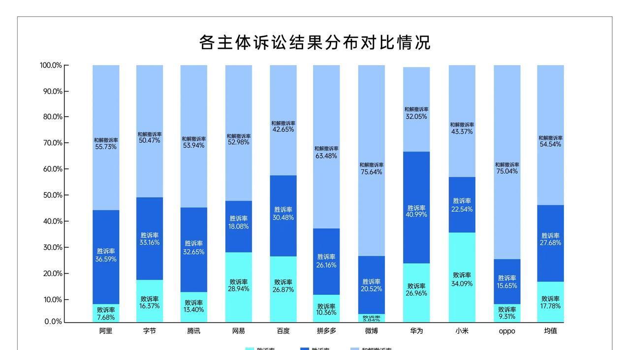 大厂法务天团也“认怂”?50%以上的官司靠和解,这本经济账真算明白了! 最近,一份互联网平台知识产权诉讼报告(2025),彻底颠覆我的认知,报告主要分析国内互联网大厂的 “官司” 情况,本以为能一窥大厂法务神勇,结果一看数据才知道我 “错付” 了。 据报告显示,根据天眼查、企查查的数据统计,十家头部互联网平台主诉案件的胜诉率普遍低于 50%,像阿里 36.59% 算是高的,字节跳动、腾讯胜诉率只有 33.16%、32.65%,这与多数人认知中的 “常胜将军” 完全背离。 更有趣是,大厂法务还喜欢做 “和事佬”,往往官司打到一半,一旦被告有所回应并达成和解,就会选择和解撤诉,比如腾讯、字节跳动,和解撤诉率居然高达53.94%和50.47%,法庭都成调解室了。 是不是很意外?那问题来了,大厂的诉讼数据明显呈“高和解撤诉、中胜诉”特征,难道法务团队里混进了南郭先生?其实能进大厂没一个庸手,这局面恰恰是他们智慧体现——不是打不赢,是没必要非得赢。 一方面,大厂根本不想打官司,比如遭受诬蔑或侵权,一般是投诉 + 警告,即便进入诉讼程序,只要对方态度良好,基本是握手言和。毕竟,相比动辄 1-2 年的官司,70% 以上和解协议可即时履行,既省了时间和成本,又给足了双方面子。翻开最高人民法院公布的2025年上半年司法审判工作主要数据,全国法院先行调解案件高达231.6万件,调解成功达149.3万件,这就是趋势!再说了,就算赢了又如何,现在“赢了官司输了口碑”的事还少吗? 另一方面,司法的天平从来只认“理”,所谓“地域优势”在数据面前更站不住脚。阿里在浙江被诉的案件占比 51.6%,腾讯在南山法院的主诉、被诉案件占比约 40%,胜诉率“主客场”也没啥差别。这说明,不管在哪打官司,都得凭证据说话,大厂也没有特殊待遇。 况且,现实中蚂蚁绊倒大象的案例并不少:大学生因误触手机广告起诉小米获赔 1 元,用户因爱奇艺限制投屏维权拿到 41 天会员补偿…… 看到赔偿就懂了,用户真正的诉求是得到被尊重的权利。所以,大厂心里有杆秤,与其在法庭上硬刚赌胜负,不如用和解把精力放回业务上,服务好用户,把口碑做上去。 说到底,形成这一现象的原因并非大厂真的怂,而是都有一本经济账,时间、精力和口碑,远比诉讼胜率更有用。