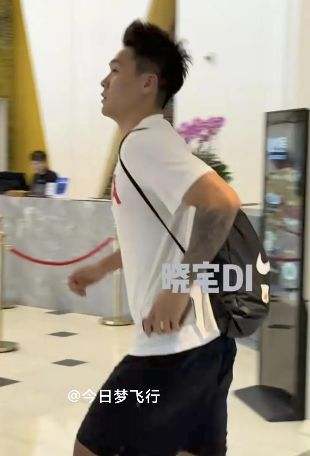中国男篮去赛前热身,赵队是不是睡过头呢? 今天下午三点,中国男篮离开下榻的杭州开