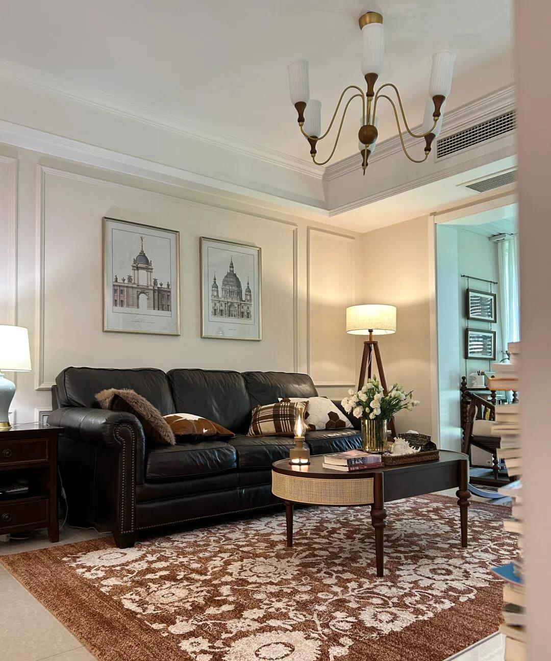 谁说小户型只能明亮通透?穿衣服偏爱浅色系的我,偏偏把89㎡的家装成了“乌漆嘛黑”的复古美式!连我妈都忍不住吐槽像进了“山洞”,可这深邃的底色,恰恰是我心中安全感的来源与高级感的密码。告别千篇一律的“网红风”,拥抱深墙、木纹与皮革的厚重质感,仿佛住进一部老电影,每一个角落都自带故事感滤镜。 在这个被戏称“乌漆嘛黑”的空间里,氛围感才是王道。深色并非压抑,而是营造出包裹感的静谧场域,搭配黄铜、深色实木家具和丝绒质感,层次丰富得像一杯醇厚的咖啡。谁说暗色系不温馨?暖光点缀下的家,夜晚的慵懒与神秘才真正开始上演。