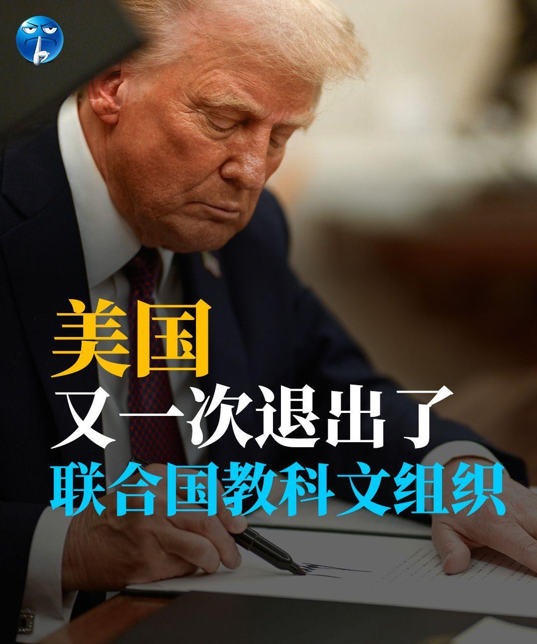 美国又一次退出了联合国教科文组织。白宫7月22日声明退出联合国教科文组织,特朗普认为该组织有反美反以色列倾向。上次退出该组织是特朗普2017年提的,理由是收费高且对以色列不公;2023年拜登重新加入了。这次退出走完所有手续,要到2027年才能正式生效,不知道特朗普任期2028年结束后,下一任美国总统会不会又重新加入。#特朗普##美国退出联合国教科文组织#