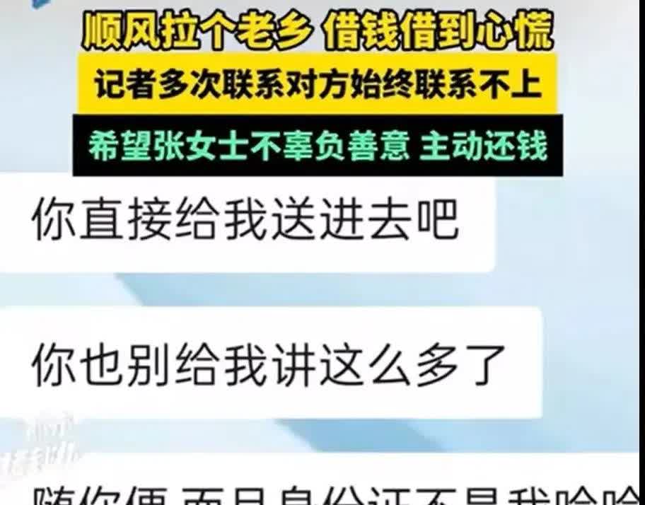 河南,一男子开车回老家,想省点油费,通过顺风车平台,拉了个女老乡,一路上俩人聊的火热,互加好友。没过多久,女老乡主动联系他,要借200块钱救急,男子觉得钱不多,二话不说直接转过去,不料,此后女子各种理由借钱,每次不多三头二百,不知不觉借出了3000元,男子感觉不对劲,心里发慌。不想女老乡又张口借300元,遭拒后立马翻脸,还威胁不借这300元,以前的都别想要,男子进退两难,无奈又转给她300元。万万没想到对方收钱后再也联系不上了,男子傻眼了! 河南的王大哥开车回乡下老家时,为了省点油钱,就在顺风车平台上顺道带了个老乡姐姐。路上两人聊得特别投机,还互相加了微信。可谁能想到,这次偶遇竟让王大哥掉进了个“钱坑”。 一开始,那位老乡姐姐只是偶尔发个信息问候一下。到了今年5月,她突然说急需200块钱,还发了身份证照片,看着挺诚恳的。王大哥一想,这点小忙得帮,就转了账。结果,这竟是麻烦的开始。 从那之后,她隔三差五就找各种理由借钱:什么工资晚发了、银行卡被冻了、生病住院了每次也不多,就三五百,有时甚至一二百,话说得可亲热了。王大哥心软,一次次地转钱,但心里越来越不踏实。等他算过账来,发现自己已经借出去快3000块了,她又来借300。这次王大哥拒绝了,没想到她立马变脸,说:“这300块不借,前面的也别想要了!”王大哥一咬牙,又转了钱。结果刚一转完,她就把王大哥拉黑了,还得意洋洋地说:“你去告吧,身份证是假的。” 王大哥这下可傻眼了,3000多块辛苦钱就这么没了。他想通过媒体和法律手段把钱要回来,也想提醒大家:好心人也得有个度,借钱这事儿,真的得小心为上。