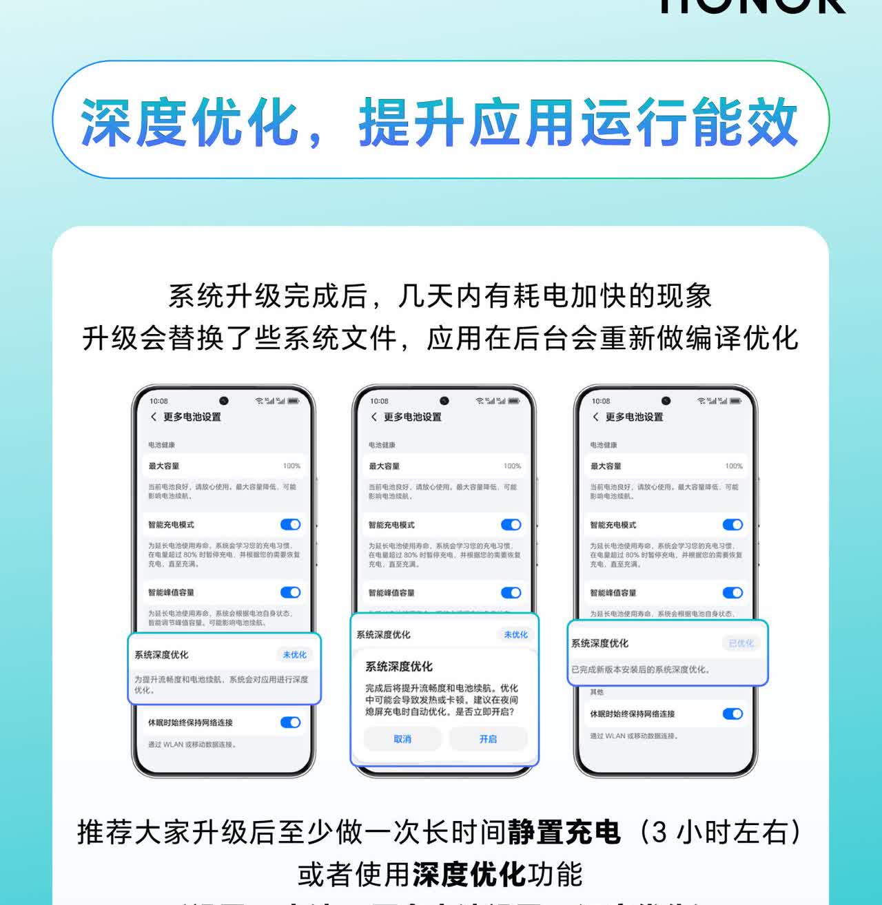 如果外出没有携带充电宝、快速充电器,会不会有手机用电的焦虑感呢?荣耀客服为大家分享了,荣耀手机五大省点密集,咱们一起近距离了解一下。首先可以进行耗电优化,从设置-电池-耗电优化进行调整,根据省电建议,按需调整。 第二可以使用省电模式,能够自动限制后台APP活动,简化视觉效果。第三可以设置屏幕优化,例如自动调节亮度、启用深色模式、启用护眼模式。第四关闭不常用APP后台启动,及时结束高耗电APP,关闭休眠始终保持网络连接。 最后可以做深度优化,提升应用运行能效,例如升级系统之后,做一次长时间静置充电。现在只需关注 @超逸谈科技 并转发此微头条,2025年07月24日,将由