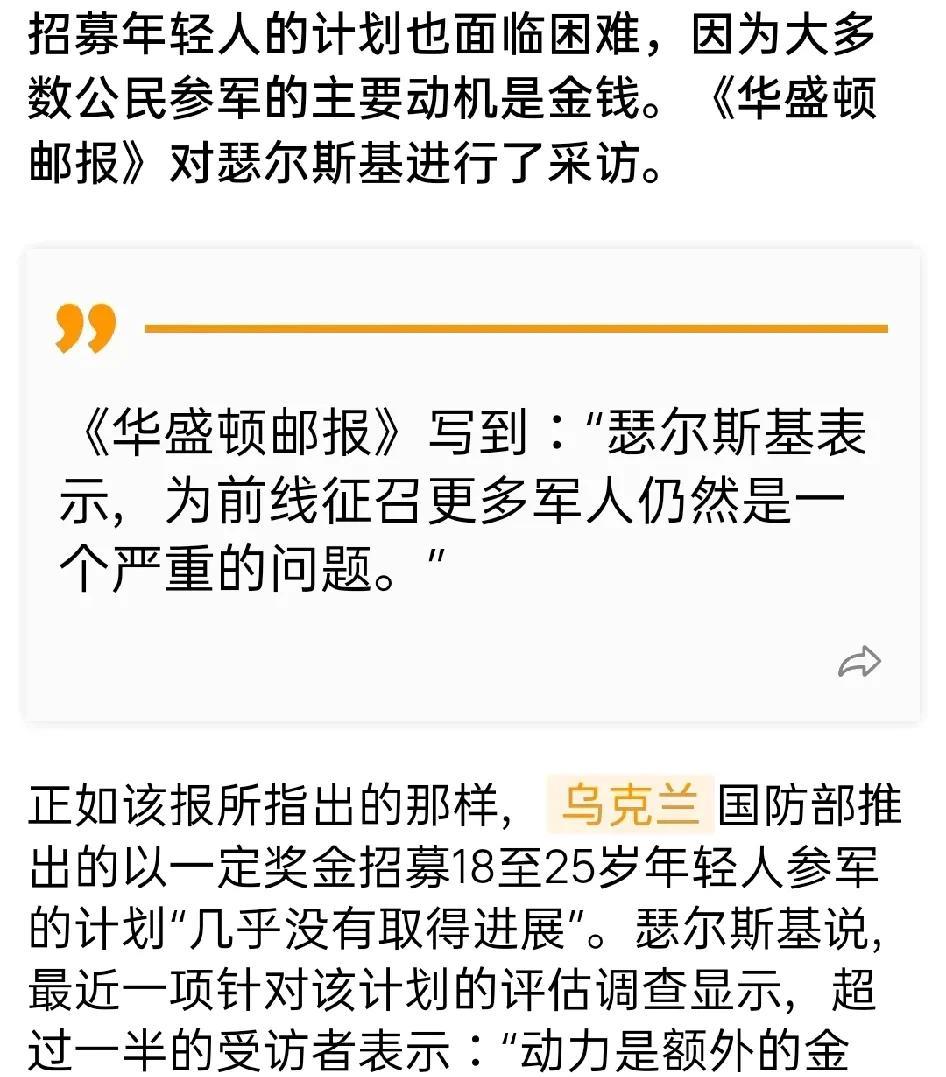 乌克兰再现噩耗!军队出现严重问题!乌军总司令亲自曝光!法闰罕见谴责乌克兰! 乌克兰武装部队总司令亚历山大·瑟尔斯基近日在面对国际媒体采访时亲自曝光了一个乌克兰军队的严重问题——为前线征召更多军人非常困难(详细内容在附图文字)。对乌克兰而言,这无疑是继乌克兰各地爆发反政府抗议活动后的又一噩耗。事实上,今天是乌克兰的灾难日,不利于乌克兰的消息远远不止这两件,一向以坚定支持乌克兰战斗形象示人的法国,今天也非常罕见的指名道姓谴责乌克兰! 就在今天,法国外交部官员阿达德非常严厉地公开指责泽连斯基所签署的那份引发乌克兰人大规模抗议的法案不符合乌克兰加入欧盟的路途,郑重劝告乌克兰现在补板还为时不晚。由此可见,泽连斯基的行为不但让乌克兰人民愤怒,连他的国际盟友也看不下去了,是多么的不得人心。现在,随着泽连斯基领导下的乌克兰政府内外交困之势显现,证明俄罗斯即将获得最后胜利,泽连斯基或将面临清算!