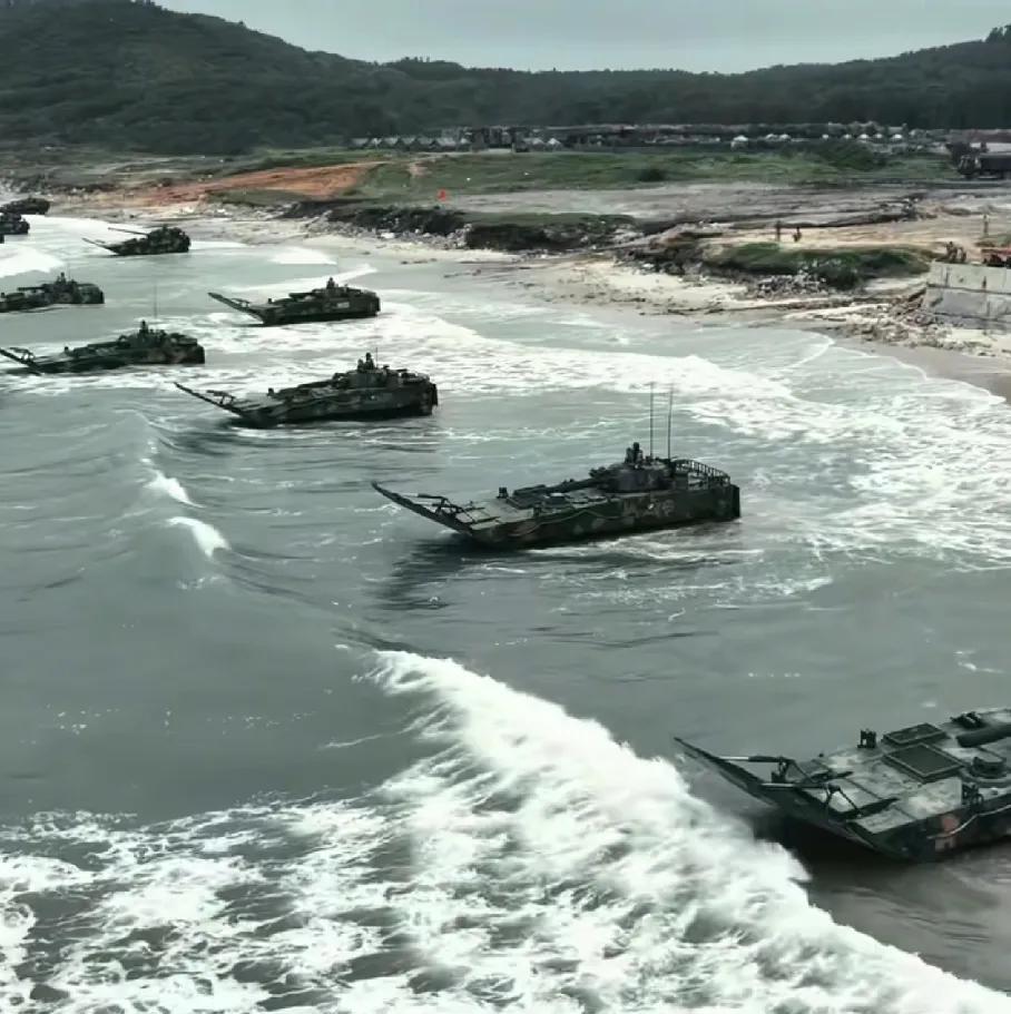 台海连续96小时“净空”,闽南某海域大批两栖装甲下海,现场炮声震天响,要“关门”