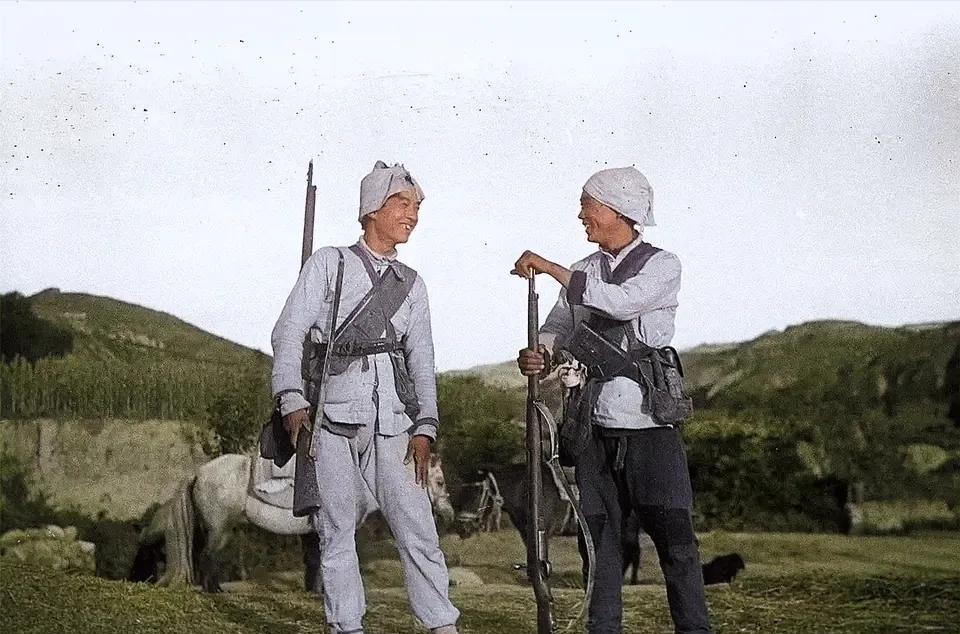 美国摄影师哈里森·福尔曼镜头下的八路军领导的延安民兵,向世界真实展示了陕甘宁边区八路军英勇抗战的英雄事迹。从拍摄的照片可以看出,当时的延安生活条件非常艰苦,这些民兵衣着非常朴素,装备非常简单,但是他们唯一不缺的就是战斗精神。面对镜头时,他们一个个表现豁达和乐观。