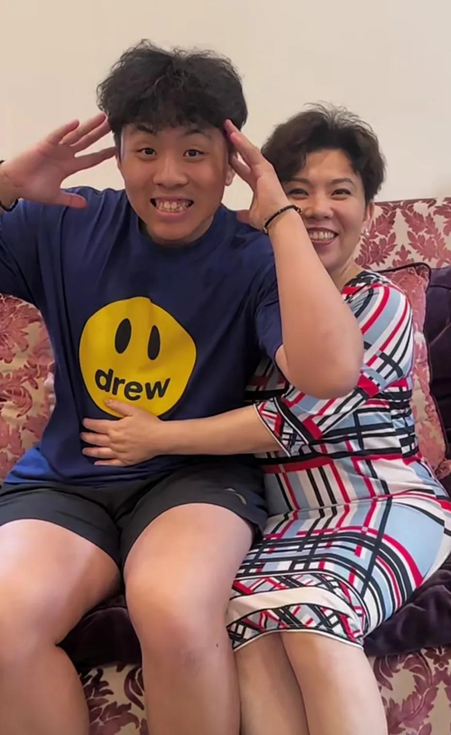 1米55的邓亚萍拉着1米85的儿子拍照,这身高差太有爱了!邓亚苹整容整的不错呀?