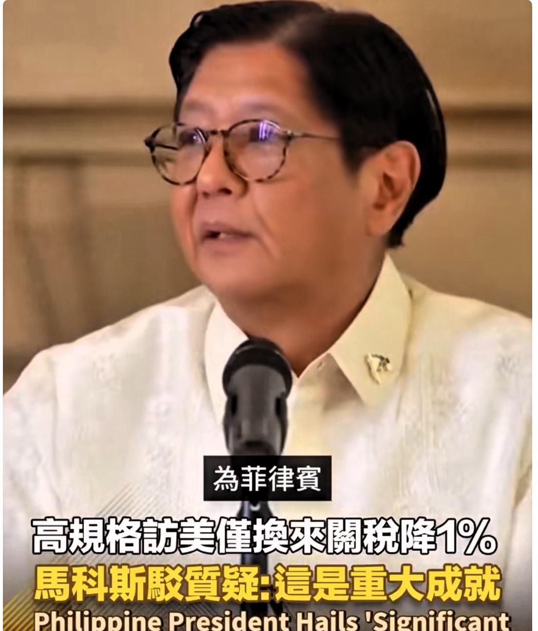 来自“美国爸爸的爱”,菲总统宣称:这是了不起的成就! 针对美国仅仅把对菲律宾进口商品的关税从20%削减到19%,菲律宾总统马科斯22日宣称,关税税率降低一个百分点,就已经是一项“了不起的成就”了。作为回报,菲律宾将考虑向美国开放汽车产业等更多的市场,并且实行零关税政策。 菲律宾总统马科斯大张旗鼓地访美,企图依靠对抗中国向美国主子表忠心、献殷勤,结果却被美国直接无视。 1%怎么看都是他美国爸爸严苛的爱!特朗普这是故意打一巴掌再给个枣。不仅如此,特朗普还称与中国关系非常好,我不介意你跟中国打交道。这更让菲律宾人一脸茫然。 菲律宾在外交上完全倒向美国,认不清现实,还自欺欺人自我感觉良好,真不知道是真愚蠢还是出于无奈。