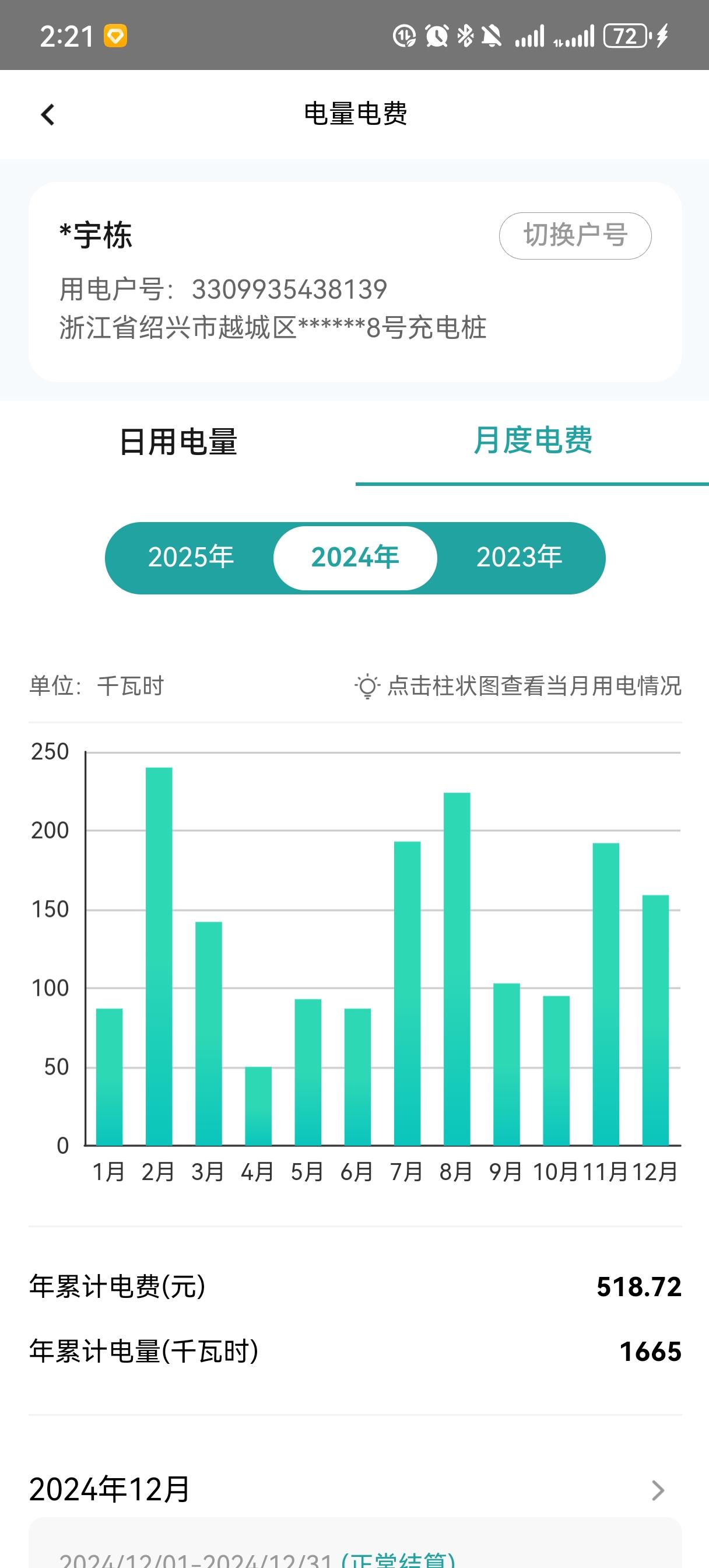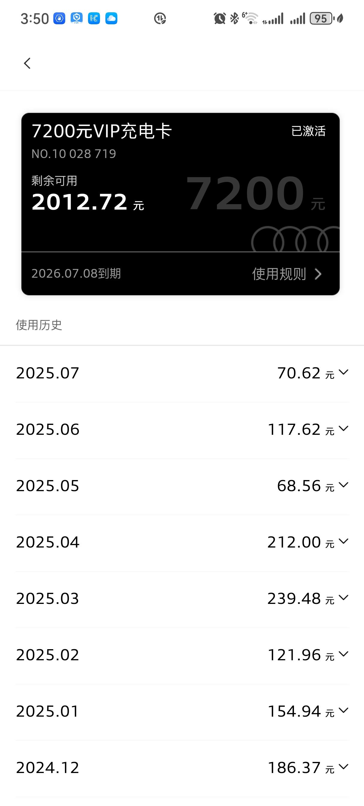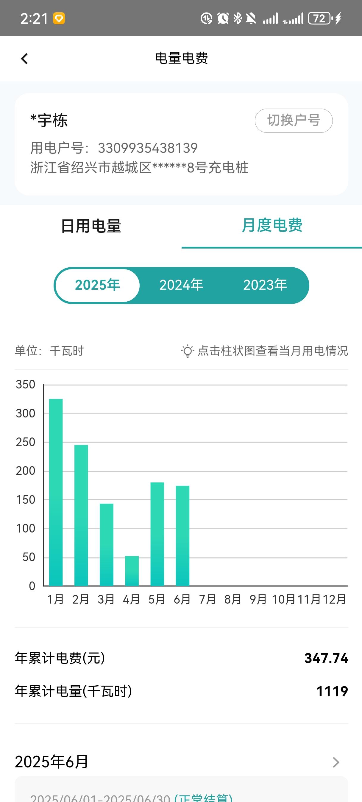 近期国际局势比较动荡,导致油价上次上涨了将近3毛,而作为2年行驶58000公里电车的车主来说,给大家梳理下我这个车子日常行驶时产生的电费要多少? 1、家里峰谷电慢充充电: 电车最理想的状态下是每一次充电都是用慢充,而且是在家里的峰谷电充电,这样子优点在于:①可以用3毛左右1度电进行充电,大大降低了电车通勤的费用。②慢充对电池的损耗更小,从而进一步保护电车电池。 所以在可能的情况下我都会选择在家里使用峰谷电充电,结合账单来看: 2023年家充用了921度电,费用287.34元。2024年家充用了1665度电,费用518.72元。2025年目前用了1119度电,费用347.74。也就是2年时间家里慢充一共充电3705度电,共花费了1153.8元。 2、外面充电桩快充充电: 买车时送了3年7200元的电卡,可以在很多快充桩使用,包括特来电(目前体验最好的充电桩)、国家电网、星星充电、小桔充电等等,每个充电桩的功率都不一样,功率大就充电快,当然价格的话会比家里贵很多。像绍兴这边快充桩在晚上10点30—晚上8点以及中午11点—13点为充电低谷期价格最低,其他时间段就要贵上1倍多。所以有时候快充我也会选择在这个时间点进行充电。那么目前电卡还剩下2012元,也就是已经使用了5188元。 3、总结计算费用: 按照我58000公里来算,电费一共使用了6341.8元,折算一下的话是每公里0.11元左右。当然这个价格还是包括了大量的快充费用,如果纯家庭峰谷电充电价格要远远更低。0.11元每公里对比下油车那真的是便宜太多了,我之前那辆油车也算省油的,差不多是0.5元每公里,对比一下还是相差3,4倍的样子,所以电车的尽头是省油钱哈哈,那么油价上涨了你会换电车吗?