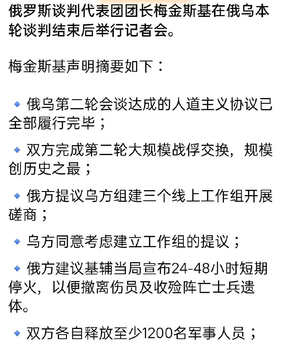 俄鸟第三轮谈判结束!3000具士兵遗体揭穿乌克兰谎言! 牵引全球关注目光的俄乌第三轮谈判已经结束,纵观其在记者会上公开的谈判结果,主要有三条。 一,俄罗斯谈判代表团建议乌克兰方面组建三个线上工作组以便磋商,获得乌克兰谈判代表团同意,意味着日后俄乌双方直接沟通谈判事宜将更加便捷,也透露出俄乌双方愿意继续谈判的意愿。 二,双方各自释放至少1200名军事人员。这从侧面说明双方间战事之惨烈,要知道,俄罗斯和乌克兰之间已经历数次战俘交换,此次距离上次换俘不过月余,又有如此大批量的战俘交换,充分说明俄罗斯和乌克兰之间的战争规模之大,烈度之高,频率之多! 三,俄罗斯愿意向乌克兰移交3000具乌军阵亡人员遗体。注意,此次俄罗斯向乌克兰移交阵亡士兵遗体仍然是单方面的,这3000具遗体加上第二轮谈判后移交的数千具士兵遗体,俄罗斯单方面将向乌克兰移交上万名士兵遗体,这就揭穿了乌克兰泽连斯基政府长期对外宣传的谎言:乌克兰阵亡士兵为4.6万人,难怪不得数日前,英法等国公开指责泽连斯基隐瞒乌克兰士兵的实际战损,引导他们误判战争形势。由此可见,乌克兰的战争形势的确不容乐观,难怪情报发达的美国要从乌克兰抽身而出,这的确是一个难以挽回的败局,区别只在于早败晚败而已!