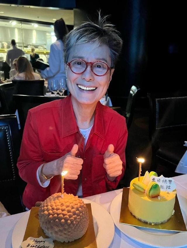 有「鬼马歌后」之称的仙杜拉移居加拿大多年,只有演出邀约才会返港。日前仙杜拉迎来82岁生日,资深传媒人汪曼玲在社交平台晒出仙杜拉的近照,并写道:「我送给在温哥华的仙杜拉、Clara及MiMi三个七月之星,遥远的生日祝福。祝他们生日快乐、身体健康、平安喜乐。」相中所见,身穿红色外套的仙杜拉依然染了一头金色短发,精神奕奕,状态不俗! 仙杜拉原名梁玉姬,15岁开始走埠登台,60年代仙杜拉与阿美娜组成「筷子姊妹花」,主力演唱英文流行曲,凭前卫衣着及超高发髻的孖妹造型而一炮而红,但其后拆伙分开发展。虽然仙杜拉的音乐作品不算多,但当年由她主唱的剧集主题曲《啼笑姻缘》唱到街知巷闻。仙杜拉于1991年香港新城电台启播时获邀担任DJ,由于朝早开咪,夜晚唱歌表演,令身体不胜负荷,五度因严重耳水不平衡,要急救由救护车送院。 1994年后仙杜拉决定移居加拿大温哥华,与表姐同住互相照顾。 2003年仙杜拉患上乳癌,个性乐观的她积极抗癌,2016年接受《星级会客室》访问时表示没想过装义乳:「医生有提出过,我觉得没有必要,因我没有丈夫,所以不需要。」仙杜拉是黄霑的契妹,亦视顾嘉辉为恩师,2023年9月她曾返港参加《情牵辉黄经典演唱会》,不过同年12月被爆在加拿大跌倒受伤需要送院治理,情况严重令人担忧,幸好休养过后已康复,状态非常好!