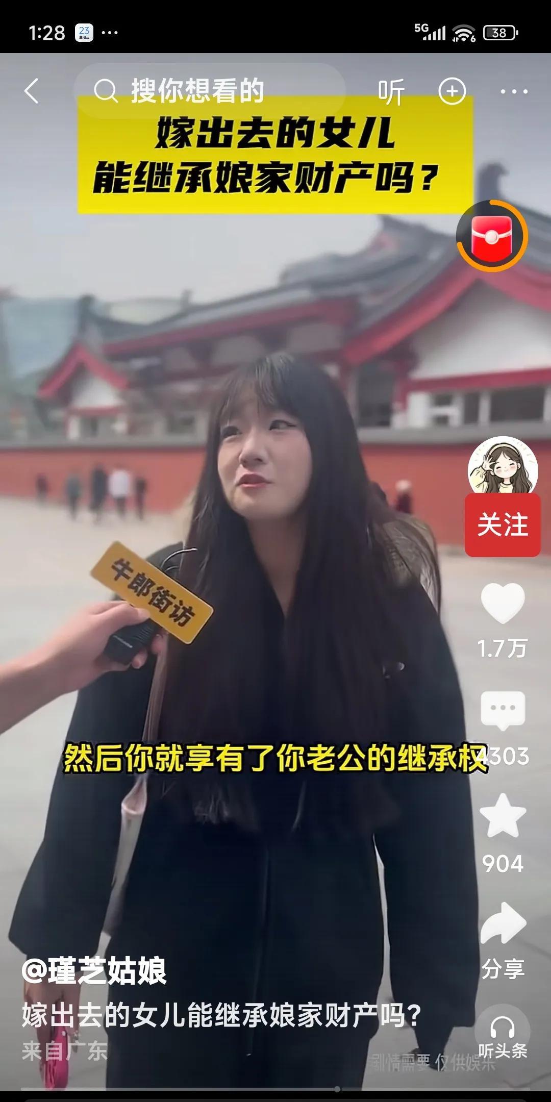 嫁出去的女儿能继承娘家的财产吗?姑娘回答不能。网友说:这样的女孩子一辈子都会幸福