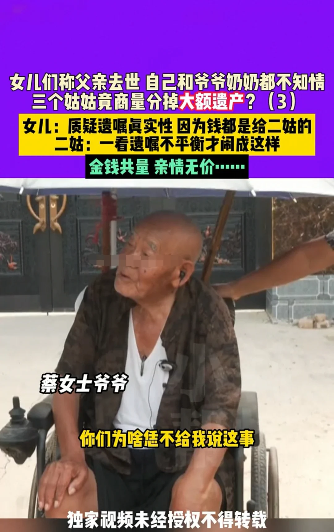 蔡女士很震惊:自己和姐姐才是父亲的女儿,怎么财产都留给二姑呢?她不相信。