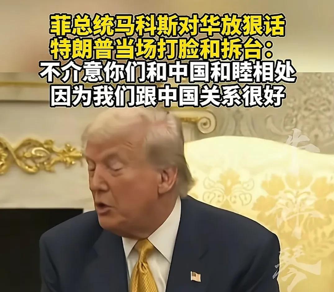 这叫菲律宾总统马科斯情何以堪啊,都已经拼命抱美国大腿了,没想到不仅关税照加19%,还被当面打脸。 在大庭广众之下马科斯为了拍马屁,可以说完全不顾在中美取得平衡的重要性,一味的向美国献媚对华强硬,不料特朗普都听不下去了,当面表示菲律宾可以与中国交好,因为美国也和中国友好。表面上看是特朗普为菲律宾好,实质上是特朗普当众调侃挖苦马科斯。明眼人都知道在南海问题上,马科斯只有听美国的份,如果不是美国要求,菲律宾哪里来的底气在南海做搅屎棍。菲律宾不想和中国友好吗?关键是要看美国脸色。 所以,这次马科斯真的是有苦说不出,心里估计嘀咕着,都已经这么讨好美国了,没想到还被当众奚落,尴尬至极。关键是马科斯还不敢吭声,双手放在膝盖上,安安分分的坐着,像个被训话的学生。 可以说,马科斯千里迢迢跑到美国来,是里子面子都丢得一干二净了。