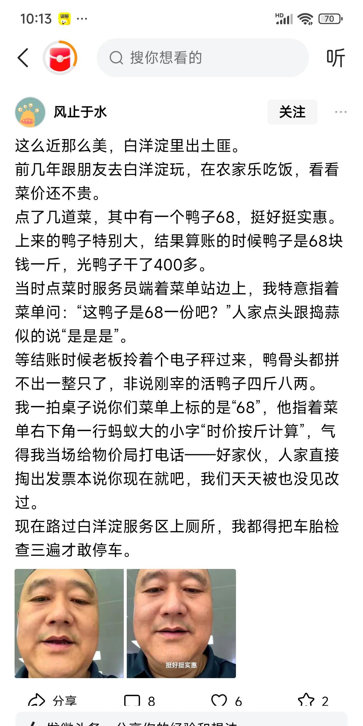 白洋淀的坑不是现在才开始的,20年前我去的时候就是这么坑了,当时一顿饭就吃了一千多