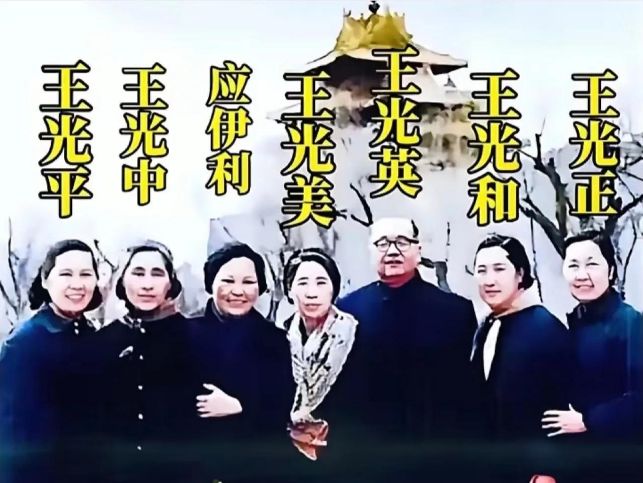 这张罕见合影中,王光美与兄弟姐妹齐聚。王光美排行第七,家庭庞大,兄弟姐妹年龄跨度