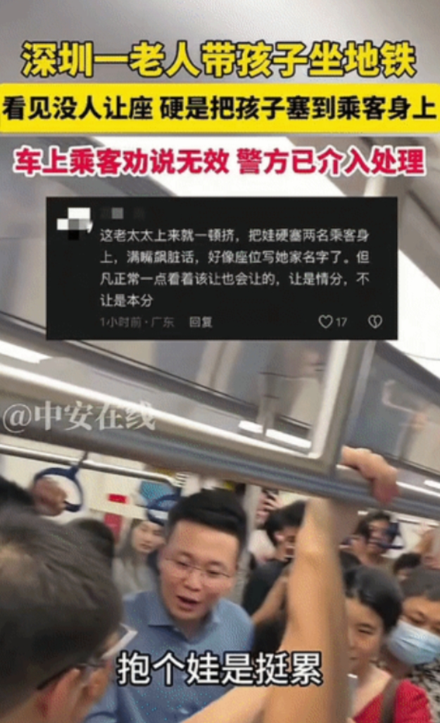 “这老太太火了!”广东深圳,一老人坐地铁见没座位,直接把小孩塞到乘客怀里,乘客都懵了,两人因此发生激烈的争吵,周围乘客纷纷劝阻都没有结果!