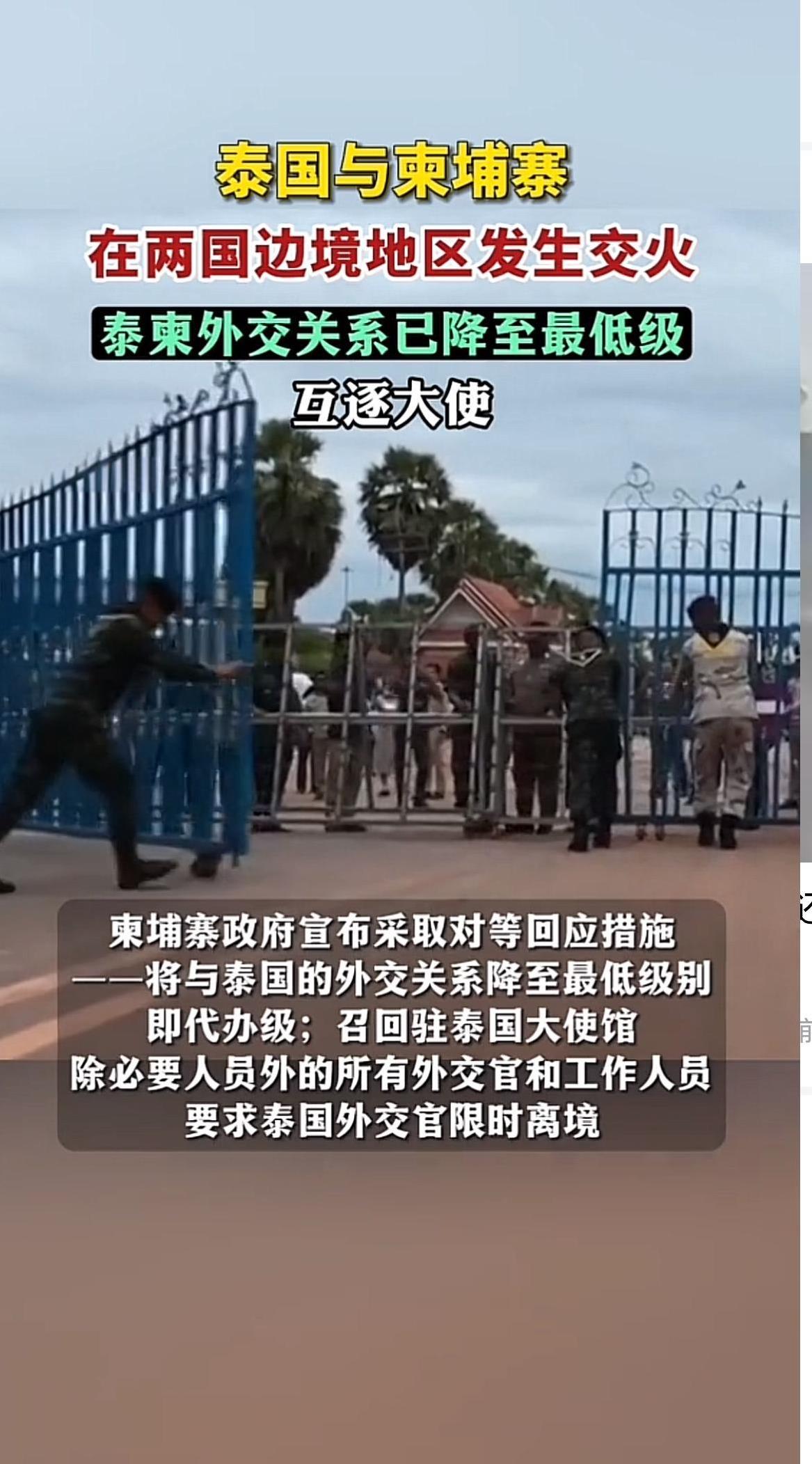 快讯!泰柬边境突然发生激烈交火! 泰柬双方最终还是因录音事件撕破了脸,现在已经是兵戎相见。走到这一步也是意料之中事。 据泰国陆军24日表示,当天早上,柬埔寨方面在边境地区率先开枪后,双方发生冲突。据消息称,交火地点在柬埔寨奥多棉吉省边境地区。 柬埔寨国防部发言人证实交火事件属实,表示泰国军队率先向柬埔寨军队开火。柬埔寨军队依法行使自卫权。 需要注意的是,西方势力将如何伺机而动,非常值得关注。美国在泰国和柬埔寨两国的军方都拥有根深蒂固的影响力,不排除美国故意借机在东南亚挑事,破坏中国与东盟的稳定关系!如果证实西方只要参与进来,就记住要关门打狗!