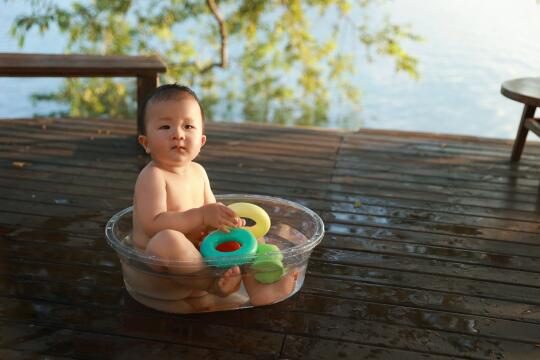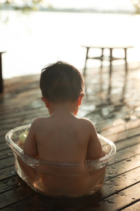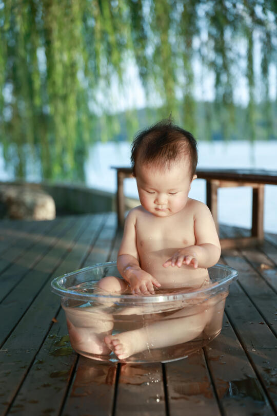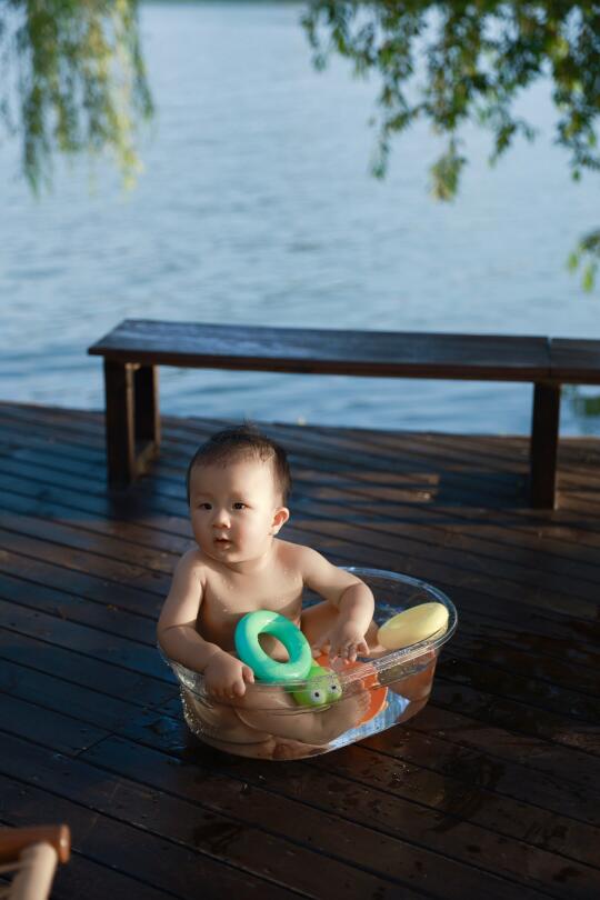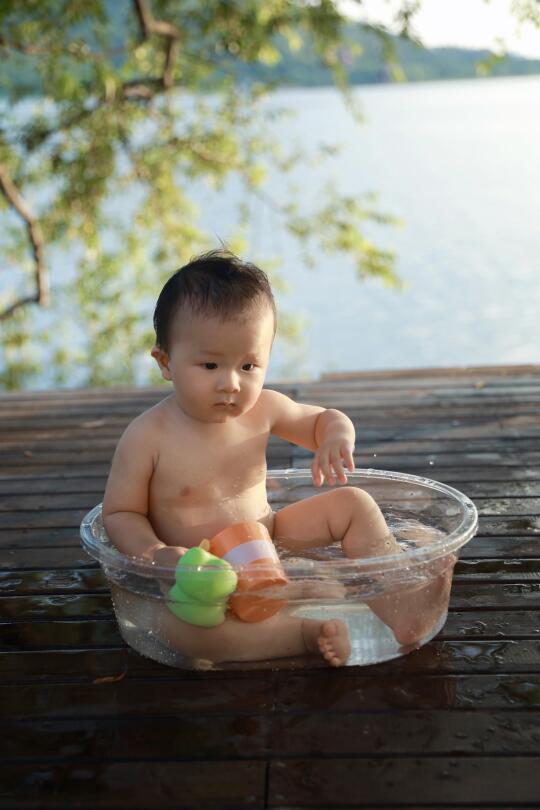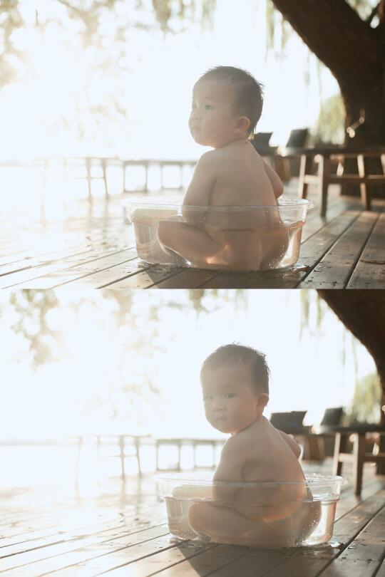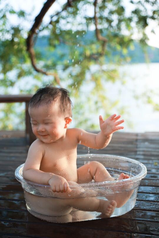 一直想跟娃拍组夏日洗澡照,因为我永远在怀念童年。 我的童年,是一枚被盛夏烈日晒得发烫的硬币。 一面刻着午后猝然而至的雷雨,天空陡然泼墨般暗下,豆大的雨点砸在院里的老槐树上,哗哗作响,又急又密。 另一面则刻着雨停后骤然复起的蝉鸣,那声音如永不疲倦的弦,于浓稠的绿荫里震颤不息,织成一片无休无止的声网。 记忆里最清晰的,是和小伙伴们奔至村后溪涧,光脚踩在凉滑的卵石上,任清澈溪流如绸缎裹缠脚踝。我们俯身于水中摸索着鱼虾,偶尔捉到一条,便欢呼雀跃,笑声惊飞了岸边的水鸟。玩累了,便跑回院落,捧起奶奶切好的西瓜,那凉透心脾的甜,红汁顺着手肘滴落,西瓜籽粘在下巴上,彼此相视而笑,满口甜汁淋漓。 我的小孩,我既期盼你长大,却又总是害怕你长大。不敢期盼其他,只希望长大以后的你,有一样快乐的童年和夏天。