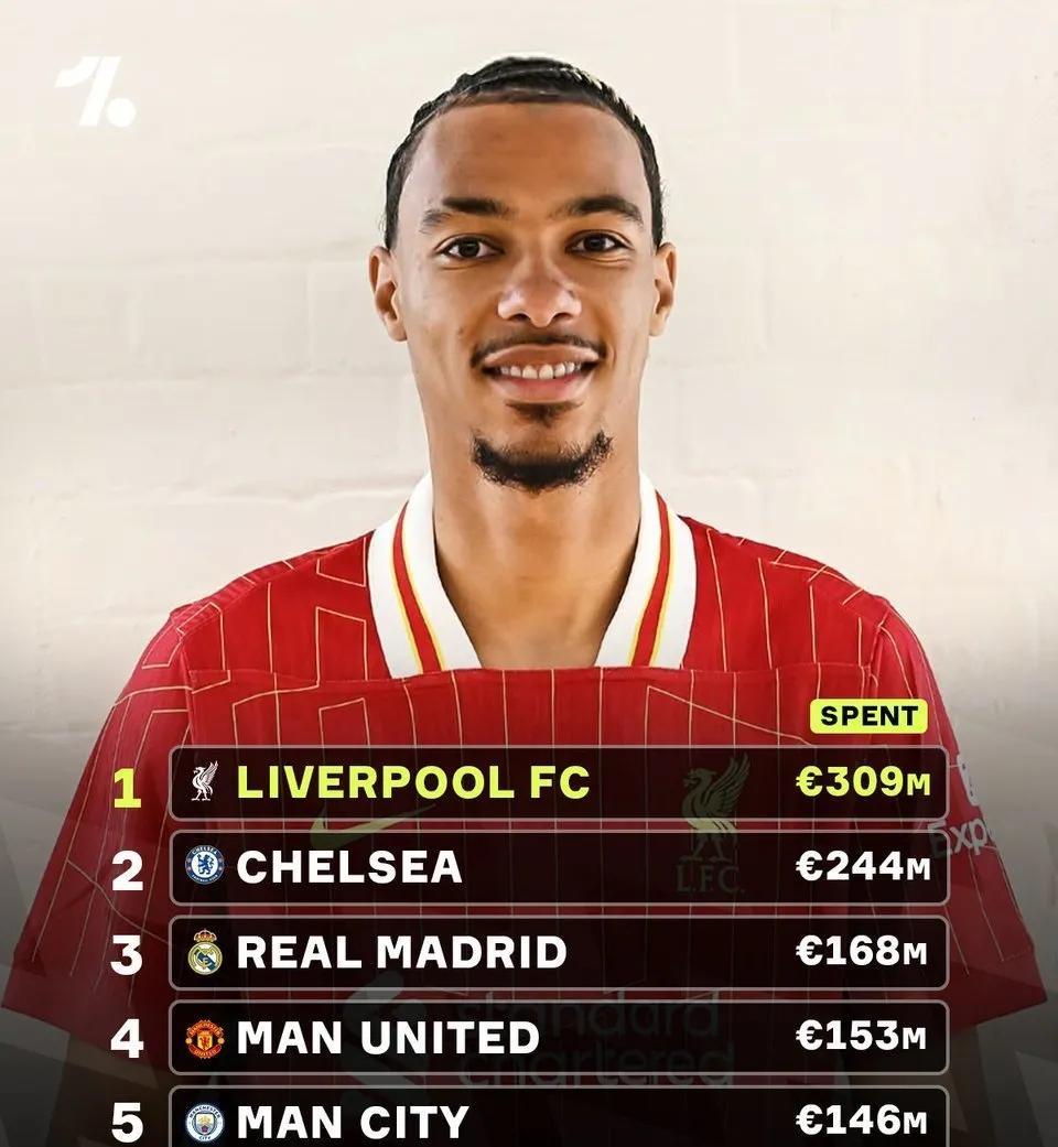 无敌利物浦诞生! 利物浦成为今年夏窗首支转会支出超过3亿欧元的球队,重量级引援一