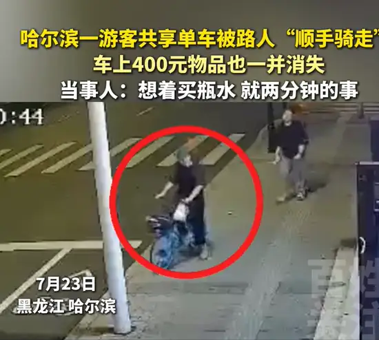 黑龙江哈尔滨,一位到哈尔滨旅游的何先生称,自己骑的共享单车,也就停了2分钟,想要去买瓶水。也就这一会功夫,车子就被人恶意骑走,连带顺走车上大概价值400多元的物品。目前该事件还在进一步调查当中。