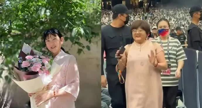 张杰妈妈跟爸爸去鸟巢看儿子演唱会,妈妈一身粉色连衣裙看起来珠光宝气,张杰不愧是亚