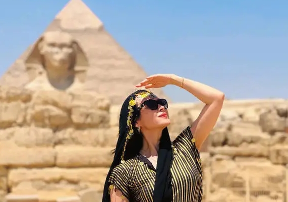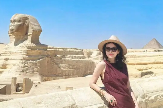章子怡埃及打卡,金字塔前化身现代“艳后”。