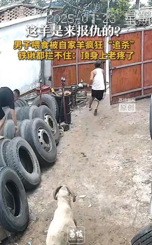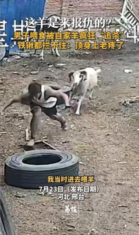 “笑不活了!”7月23日,河北邢台,男子去院子里喂羊时,羊突然想要顶他,男子顺手拿起铁锹反击,却被羊躲了过去,随后就朝着他飞奔而来!男子吓得撒腿就跑,不仅摔了一跤,还被羊赶出门外。网友:养不熟还烤不熟吗? 这位大哥家养了几只牛羊,平时都是他照看着,喂草、饮水,没少费心,那天中午天挺好,大哥寻思着给羊添点草料,就提着饲料桶进了羊圈,哪知道刚把草料倒进食槽,有只羊突然就不对劲了。 它脖子一梗,脑袋低着,俩羊角往前顶,直勾勾地盯着大哥,看那样子像是要冲过来,大哥一开始还没当回事,心想:“我天天喂你,还能跟我较上劲?”可没等他反应过来,那羊还真就低着头朝他撞过来了。 大哥吓了一跳,赶紧往旁边躲,他瞅见墙角靠着一把铁锹,顺手就抄了起来,也没想真打,就是想吓唬吓唬这羊,让它老实点,他举着铁锹朝着羊比划了两下,嘴里还念叨着:“你还反了天了?” 可这羊压根不怕,反而更来劲了,大哥一铁锹挥过去,那羊灵活得很,“嗖”地一下就躲开了,躲过铁锹之后,这羊像是被激怒了,四条腿一蹬,朝着大哥就飞奔过来,大哥哪见过这阵仗,吓得转身就跑。 他一边跑一边往后瞅,生怕被羊追上,院子里也不平,大哥慌不择路,脚下一绊,“噗通”一声就摔了个屁股墩,疼得他龇牙咧嘴,可那羊还紧追不舍,大哥顾不上疼,连滚带爬地从地上起来,拼命往院门外跑。 最后,大哥连滚带爬地跑出了院门,赶紧把大门关上,这才把羊挡在了院子里,他靠在门框上,呼呼地喘气,后背都被汗湿透了,事情传到网上,有人说:“这羊是成精了吧,还敢跟主人叫板。” 还有人调侃:“这种养不熟的,留着干啥,实在不行,烤了得了”,也有人说:“估计是到了发情期,脾气躁,大哥也别跟它计较了。” 其实啊,养这些牲口有时候就是这样,说不定哪会儿就闹点小脾气,要是真的攻击人了,就直接烤熟了吧。