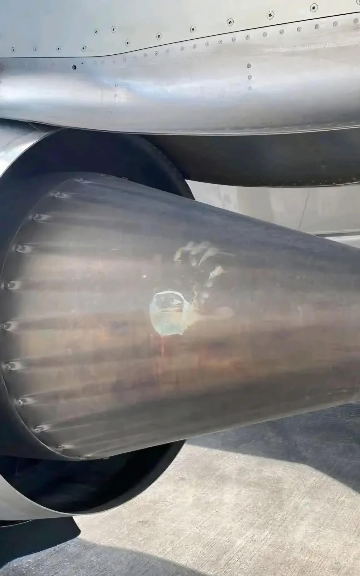 这玩意也敢摸是吧,烫不烫?下次还摸吗?是不是还能闻到一股肉香?[看] 开玩笑的,图中的手掌印应该是在冷的时候摸的,然后手上的油脂和汗液留在了上面,当发动机工作后就把手印给烤出来了。 毕竟能接触到这玩意的人不可能不知道温度有多高,而且工作状态时,你隔着一米就能感受到滚滚热浪了!