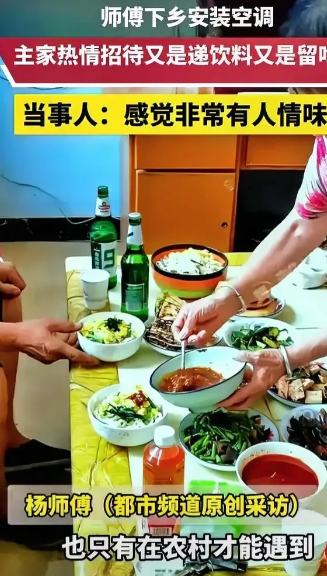 男子表示,感觉农村人非常有人情味,虽然平常也会受到客户热情招待,但是像这么热情的,也只有在农村才能遇到。