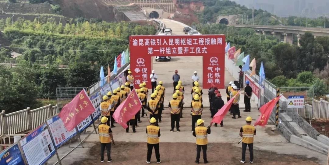 渝昆高铁建设迈出坚实步伐:昆明枢纽工程接触网“第一杆”成功组立 2023年7月1