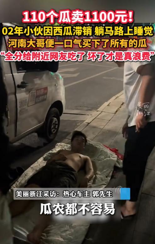 “活该他发财!”近日,河南济源,男子晚上和朋友一起散步,发现路边躺了一个小伙,询问后得知,小伙是02年的,和父亲一起出来卖西瓜,还有100多个没卖完,就边睡边等顾客。男子非常心疼,就一口气全包下来,还多给小伙转了100元,让他们回家好好休息。网友:河南人就是中! 当天晚上,大哥跟朋友遛弯,路边瞅见个小伙子蜷在那儿睡觉,旁边堆着一地西瓜,走近一看,小伙也就二十出头,看着就透着股青涩,大哥叫醒他一问才知道,这孩子是02年的人,跟他爹一块儿来城里卖瓜。 眼看天晚了,还有100多个没卖完,舍不得回去,就打算在路边守着,等路过的人买几个,七月的晚上,虽说不那么热了,可在路边睡哪有家里舒服,大哥看着小伙晒得黝黑的胳膊。 还有堆得像小山似的西瓜,心里直不落忍,他琢磨着:“这孩子跟我家小辈差不多大,出来挣点钱不容易。”当场就跟小伙说:“你这些瓜我全要了,赶紧收拾收拾跟你爹回家歇着去。” 给小伙转钱的时候,大哥特意多转了100块,说:“这钱别找了,算我给你俩买瓶水喝”,小伙愣了半天,一个劲儿地说谢谢,眼里都有点红了,可100多个西瓜,大哥家哪吃得完? 他灵机一动,把瓜就放在这,跟路过的人喊:“谁要西瓜,免费拿一个,别客气!”街坊四邻听说了这事儿,都夸大哥心善,这事儿传到网上,网友更是一片叫好:“这种人就该发财!心眼太好了” 其实,这世上还是好人多,小伙踏实肯干,不偷懒耍滑,大哥仗义疏财,体谅旁人难处,现在挣钱都不容易,能帮别人搭把手的时候搭一把,自己心里也舒坦,积善行德,好人会有好报! 信息来源:《02年小伙因卖不掉西瓜在马路上睡觉,河南大哥于心不忍,一口气花上千元买完了他的西瓜》美丽浙江