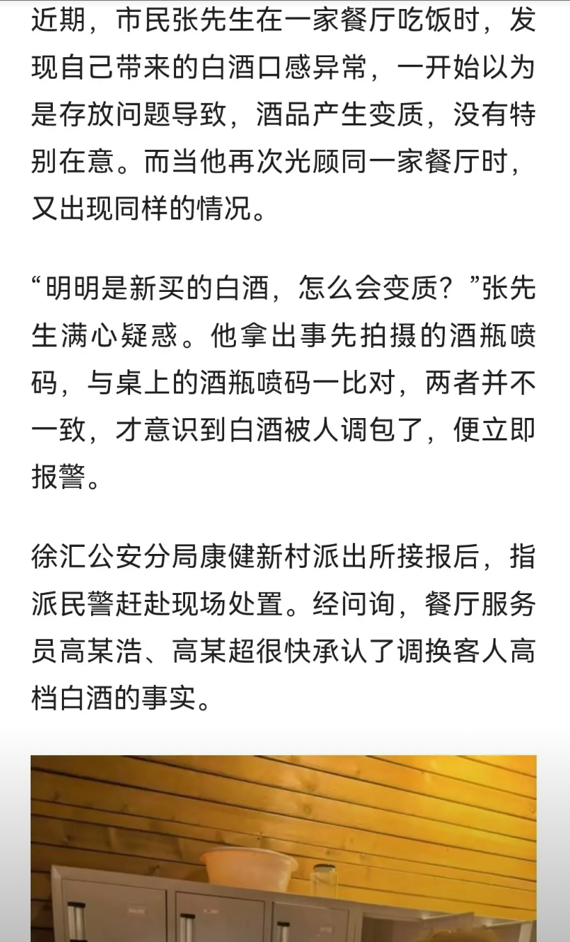 上海,男子请客吃饭自带了两瓶高档白酒,可是席间却发觉酒的口感不对,男子以为是保存不当变质了,可第二次又遇到了同样的情况。男子拿出事先拍下的喷码,和桌上的酒进行比对,发现酒果然是被人掉包了!