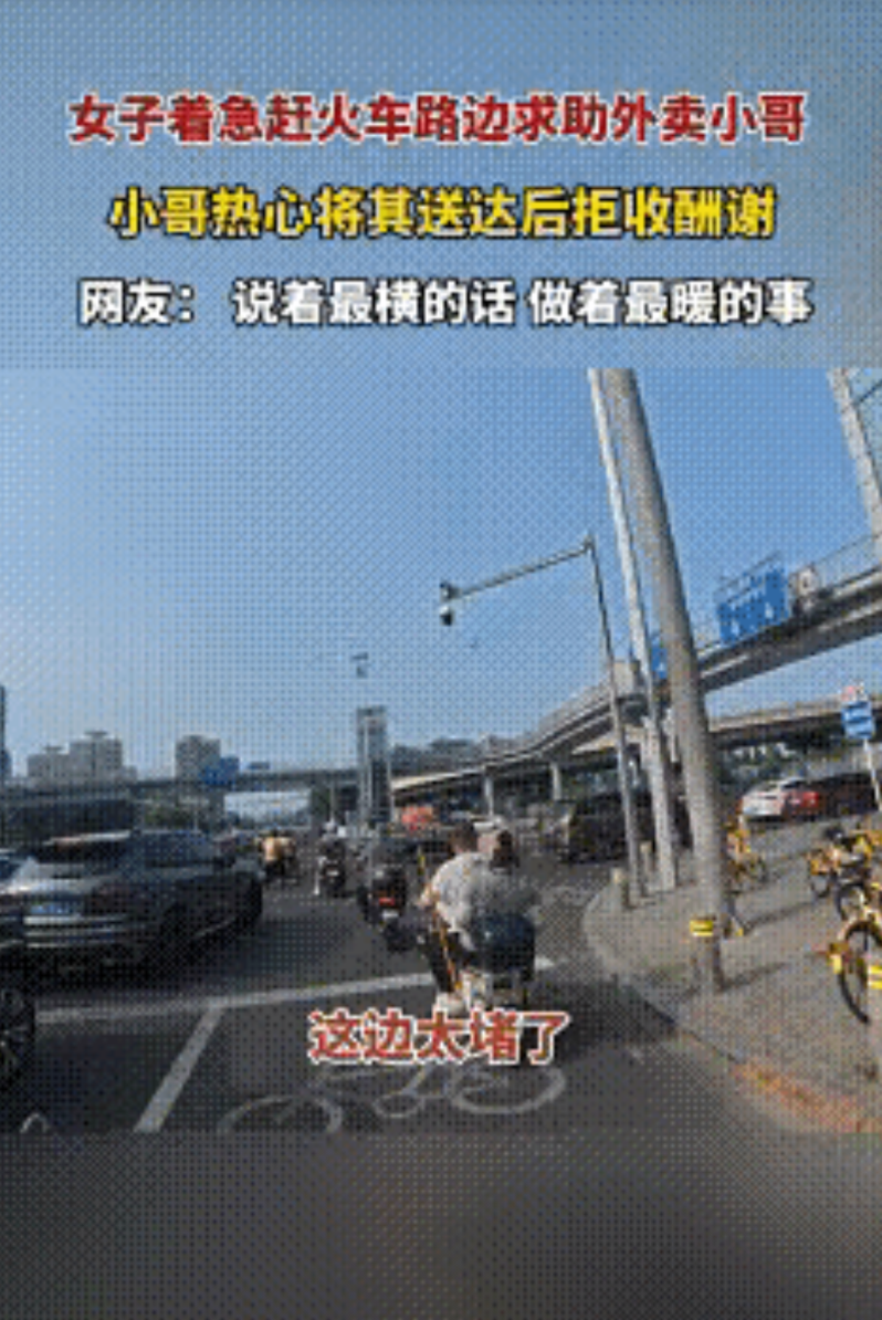 “活导航!”北京一外卖小哥在送单的路上,半路上突然被一个女生拦住。“师傅,求你送我去火车站!我要赶不上车了!”女生急得声音发颤。小哥瞥了眼时间,没多问,手一扬:“快上车!”拧动车把,专挑小路钻,风里都带着股较劲的劲儿。