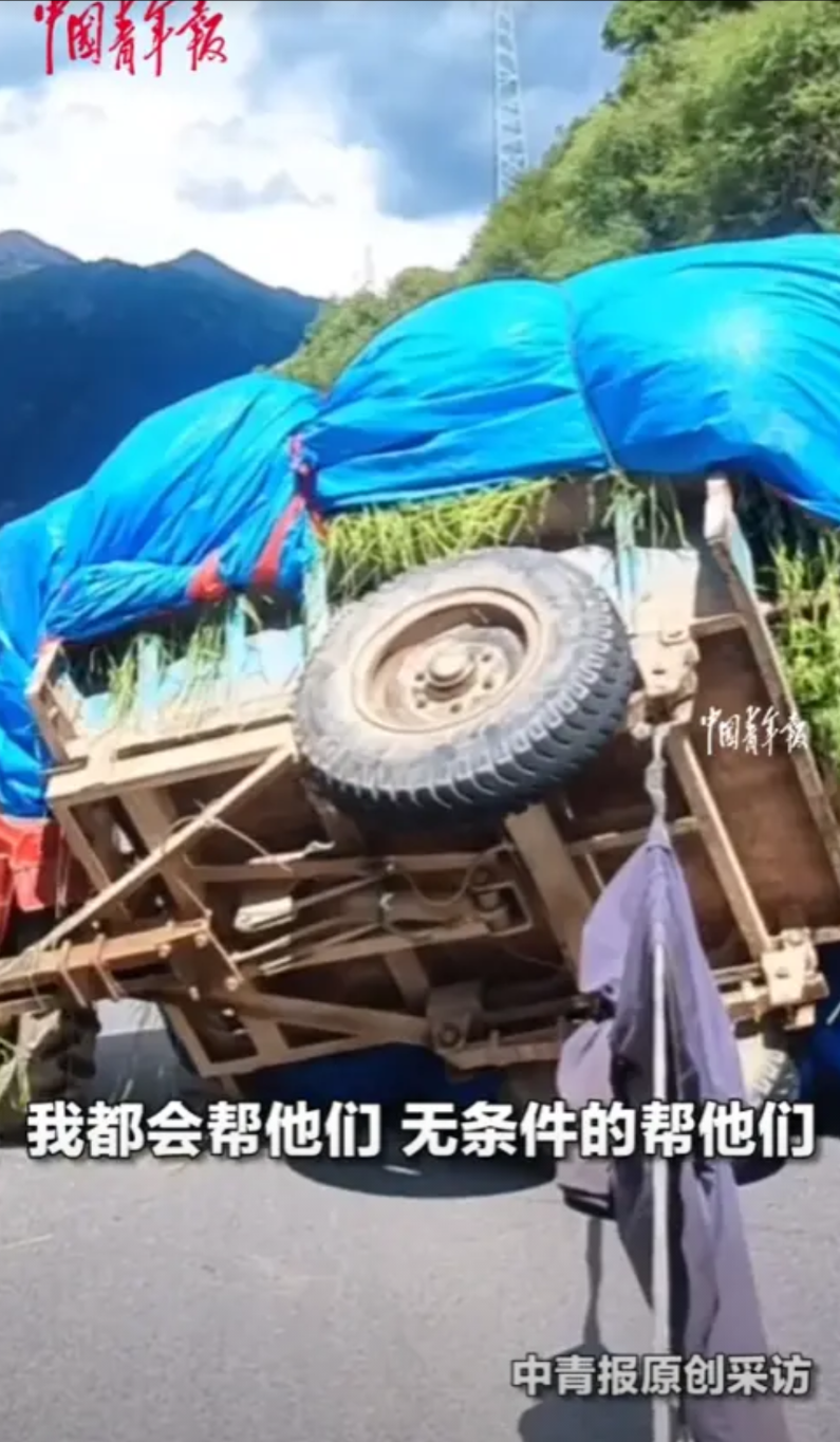 司机摆摆手,接着又帮着把撒出来的货物归拢到车上,直到拖拉机能重新发动,才放心开车离开,不得不说,这才是真爷们,遇事不慌还热心肠,西藏的风景美,人更美,这种善良是刻在骨子里的。