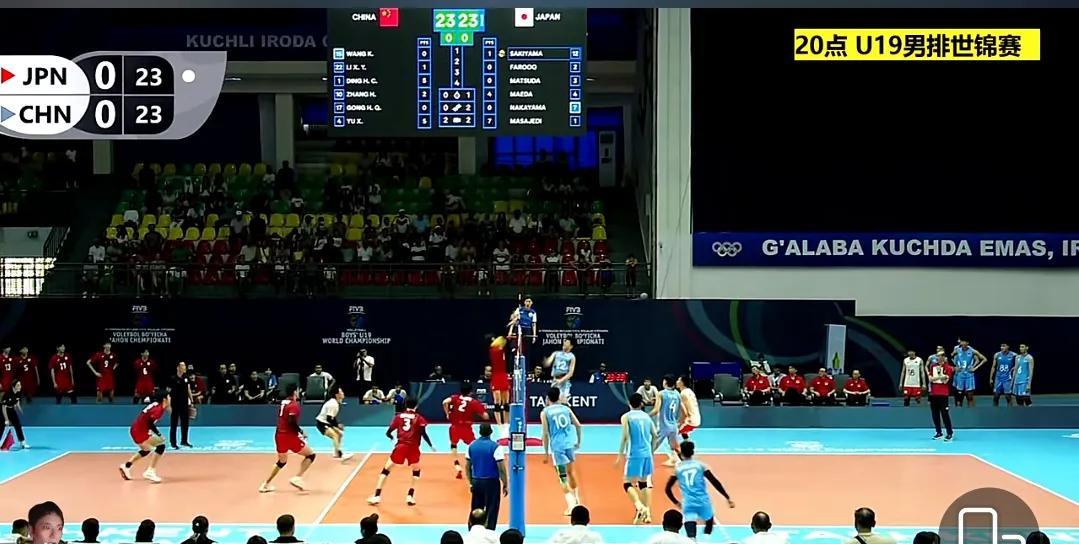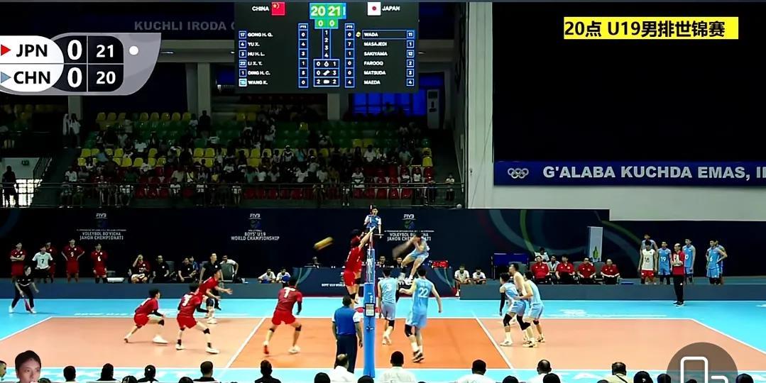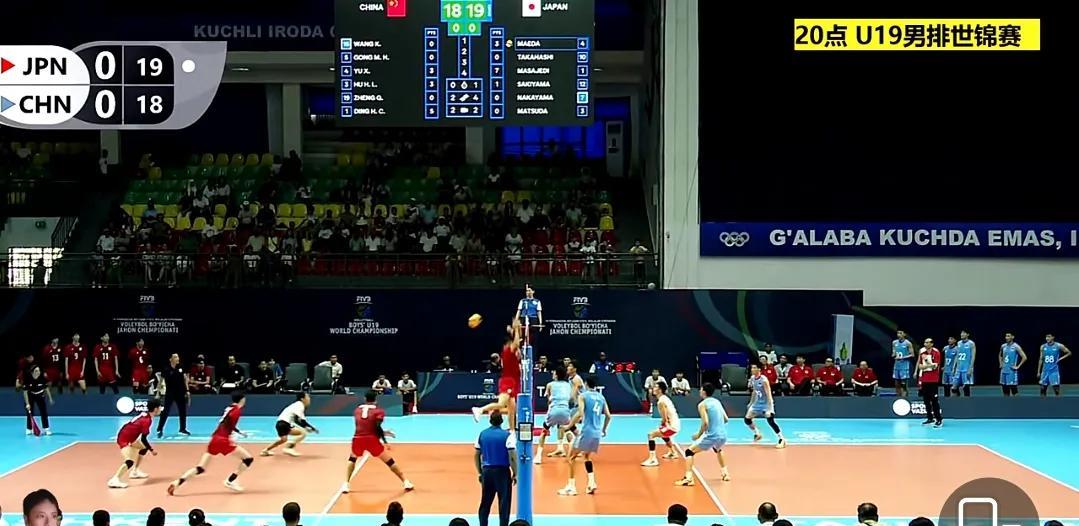 看中国男排…… 中国男排U19正在对阵日本男排,第一局双方争夺厮杀十分激烈,中
