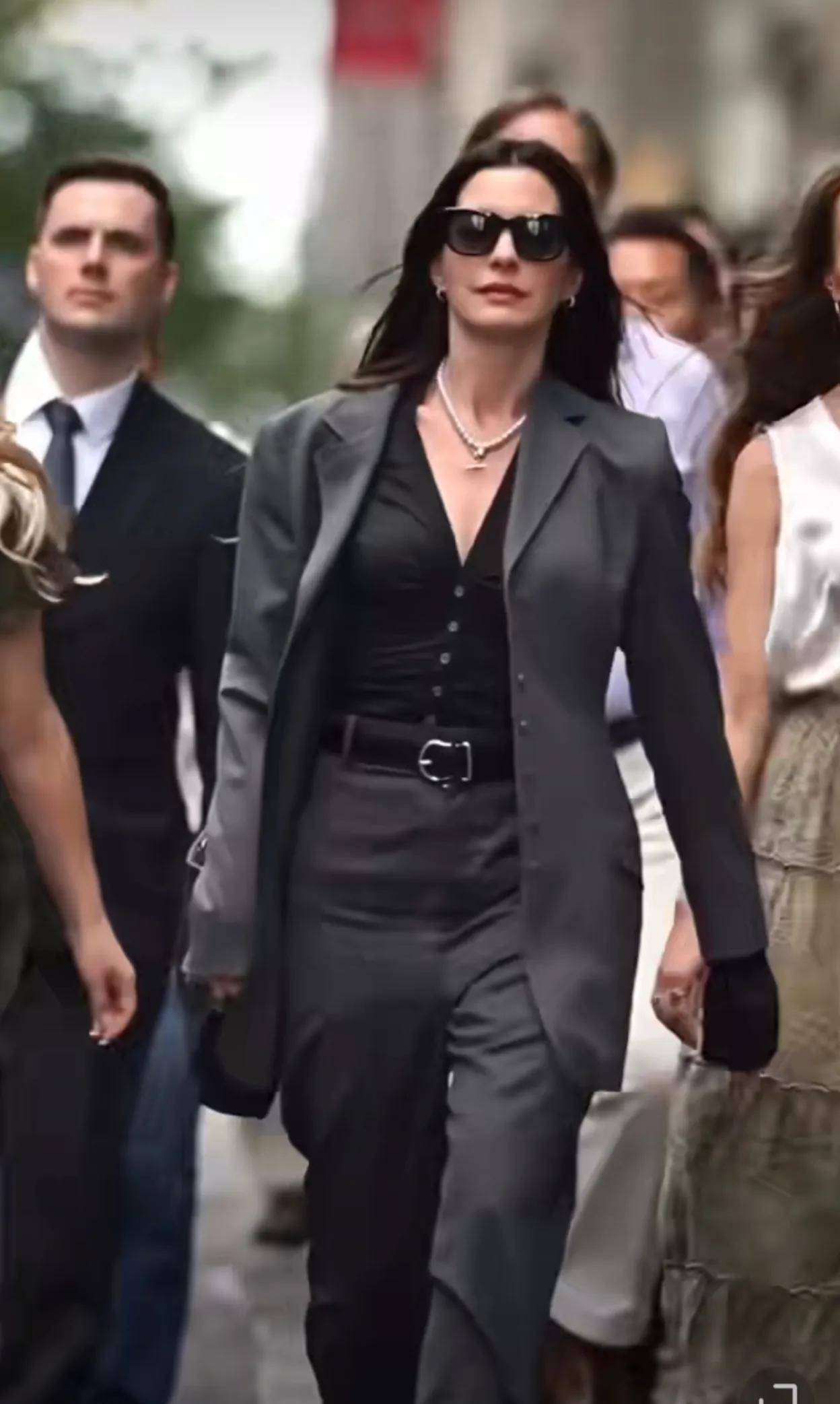 安妮·海瑟薇纽约拍摄普拉达的女魔头2路透,20年后女神安妮带着绝佳好状态回归,好美!