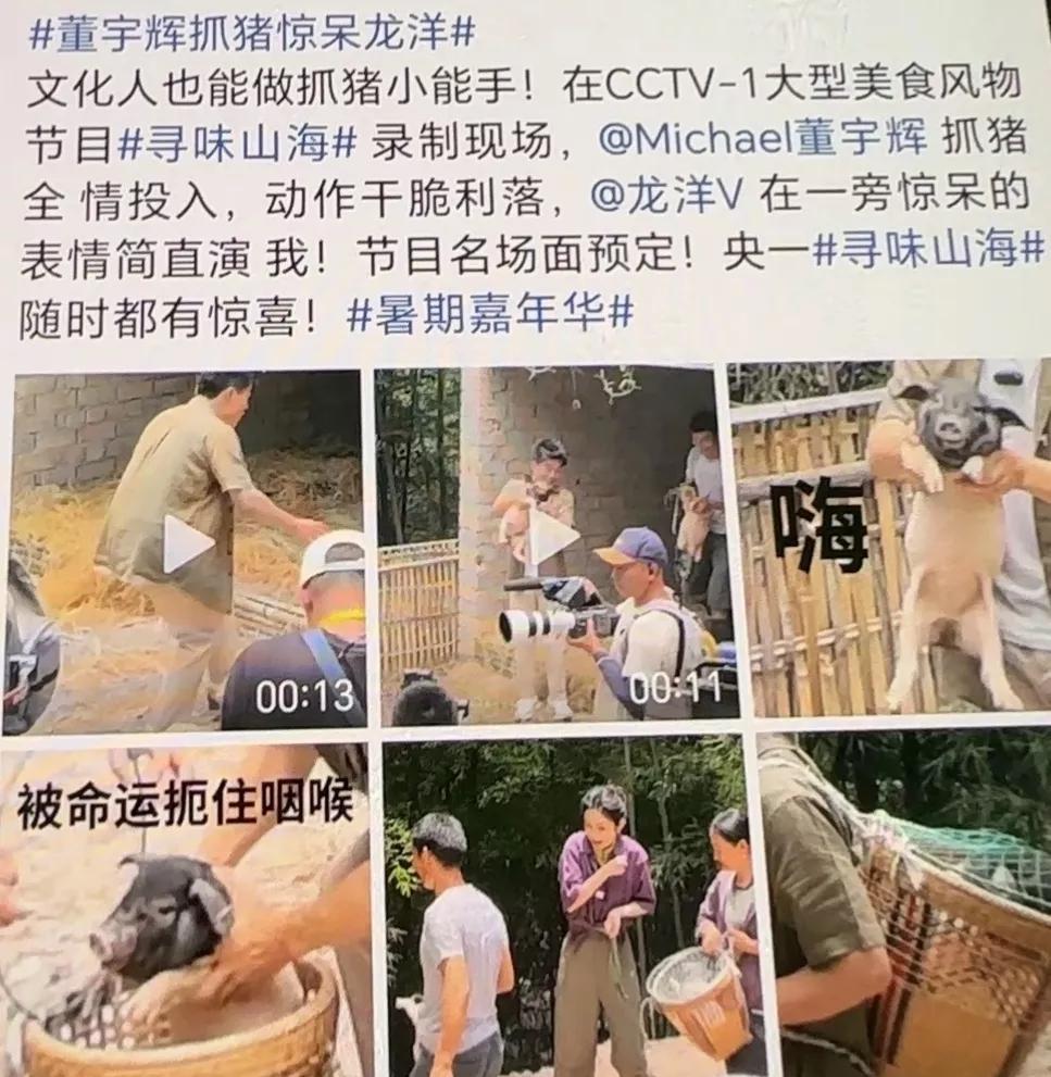 董宇辉,你咋跑去猪圈抓猪去了,看把龙洋吓得,你还在那笑不停。 龙洋都急了:你别、别、别过来呀! 网友们看到花絮笑翻了,彪哥在猪圈追着小花猪满地跑,转了好几圈,好不容易逮到,一脸开心地向龙洋炫耀。 小花猪生无可恋,被彪哥抓住递给看热闹的龙洋。 龙洋吓一跳,看现场的工作照,真的,全身都紧张了,根本不敢抓。 彪哥胆子真的大,啥都敢,难怪小时候常常被他妈妈追着打,太贪玩了。 你看,这会又吓唬小姐姐了。 有朋友问,《山海寻味》到底是档什么节目呀? 昨天弹个瓜全网上了热搜,今天下午又看到彪哥和龙洋在扯面,这会又跑去抓小花猪了,这节目也太好玩了吧,真的越来越期待了。 #董宇辉# #新锐创作者成长计划#
