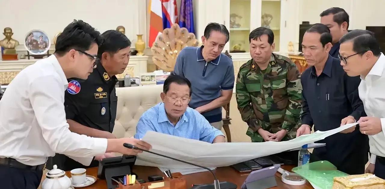 洪森针对泰国媒体说他逃往中国的传言,在社交媒体发布相关图片信息,与有关军政领导人一起讨论工作。这些图片最亮眼的地方不是他与军方人员讨论战事,而是他手上价值不菲的名表和放在桌子上的四部手机。