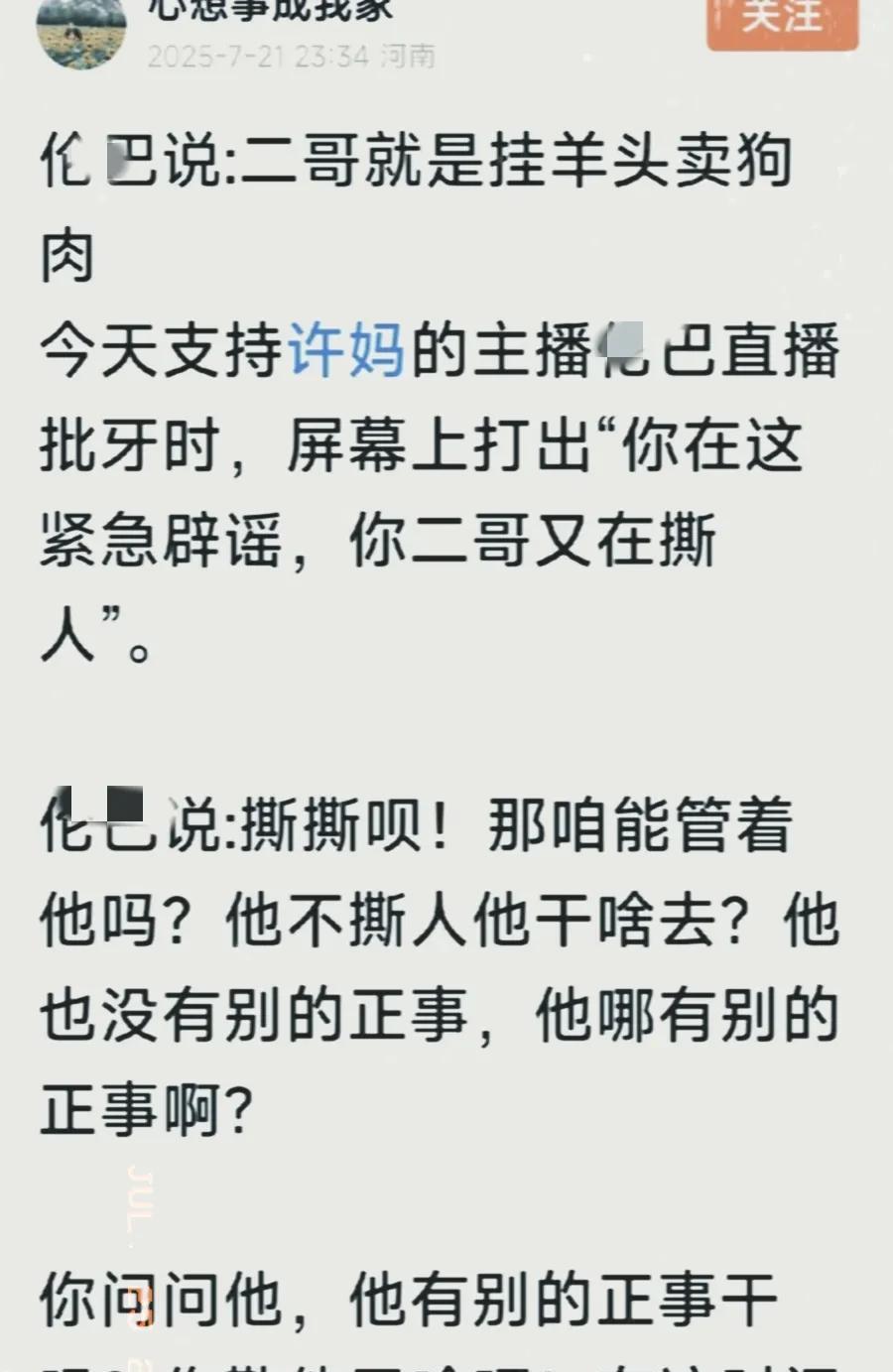 我等撕人帮粉丝道歉,都等到黄花菜啦凉还没有等到,这就是为什么许粉阵营长达近一年时间内乱都没有结束。 那铁头猫自从指责以琛帮张干部之后,被网友批评,他反而觉得自己很委屈,我说,我问你你知道不知道自己到底做错了什么,后来一下提醒他帮助东北主播想做而不敢做的事。其实他心知肚明,但是他不肯承认自己错了。只是一味的强调他被网暴了,被投了,然而却不说反省自己,自己暗搓搓骂恒苏,甚至说如果他是丹麦就打以琛。但是不明真相的人不知道,再加上撕人帮粉丝趁虚而入,让更多的人以为责任在以琛身上,很多人还不知道为啥挑起来的撕扯。 有个同甘共苦的四川人说猫:撕人帮怕你,所以投你小仔。我反击到,什么是撕人帮,断章取义,拉帮结伙,倒扣帽子,残害战友,你要不要证据?她回复你也是四川人,把证据拿出来我看看,你别丢人现眼,一天到黑老是瞎笔笔做实事的正义主播。 我回复到:丢人现眼的是你,我拿出来就必须给我道歉,不道歉是龟子 到现在还不给我道歉,我还给她留言,说我等到黄花菜都凉了。 她就是代表了很多撕人帮粉丝,也代表了撕人帮。有几个撕人帮粉丝被我反驳的无话可说,有个居然无奈说到我就痛恨新撕人帮,也不看给我道歉。 当初的时候,我把证据都发给他们(除了盟主之外)看了,他们不听,继续撕恒苏,最后把恒苏扒的一干二净,只剩下骂人这个问题了,其实我是理解了恒苏,这些粉丝动不动就骂人,然后你回击了,他们就说你骂人,简直就是流氓那一套儿,无赖。 在他们眼里撕人帮就是正义的,说他们做实事,可我看看除了口号,现场守护之外,也没有做什么实事。所以当我说他们只是个主播而已,与正义谈不上。 判断一个主播是否正义,要从其言行、动机和目的综合考量。若主播基于事实,为追求真相、维护公平正义而发声,那可视为正义;若只为蹭流量、博眼球、谋取私利,故意歪曲事实、挑起争端,就不能算正义。 真正的正义,有善良、正直、公正,勇敢、担当,责任、公义、刚正不阿、诚实,宽容等,可是在十三阿哥身上哪里看到这些品质? 从支持许妈姚爸一方的立场看,撕恒苏的主播并非正义的。恒苏为许姚发声,坚守正义阵地,还揭露不少人黑幕恶行,让他们恶行曝光,为此被很多人围攻,这包括十三阿哥,当证据摆在面前,还不肯道歉,这算什么正义? 他们做一套说一套,真的当面是人,背后做鬼。 这十三阿哥纷纷出视频,呼吁团结,迎来粉丝们的掌声,夸他们有格局,然而却一直在撕恒苏。 大概头天夜里正副盟主聊天,撕咬恒苏,第二天恒苏反击,结果被那些小人给盟主打报告去了。结果盟主对恒苏诋毁说他撕人,栽赃陷害,否认他做的实事,作品就是挂羊头卖狗肉,污蔑他是个反复无常,小人! 这真的是血口喷人,倒打一耙。所以他们的粉丝也是到处这样说的,被我忿到,你眼睛瞎啊,看不到告马户,举报大娘和杜粉们吗?那烂果儿烂骨头打电话举报许妈,他们做了没有?自己不做实事还污蔑做实事的人。其实像恒苏一样的正义主播很多,只要杜粉有行动,他们就反投诉对方,来保护许妈,反而看看十三阿哥们口号喊的响亮,保护许妈保护柴桑大姐保护李圣律师,结果呢?你们看到保护了吗? 这盟主太会装人了,他对小人说:他真那样的,你劝劝他,让他别撕了。团结就是力量,帮这个善良阿姨去追真吧! 真的太能表演了,一方面呼吁团结 ,另一方面自己却撕人,还往自己脸上贴金,实在是虚伪至极。 这些主播们,一个个打着正义的旗号,蹭流量,还搞窝里斗,为什么撕恒苏,主要还是利益,因为恒苏也是带货主播,他们不但撕恒苏,也撕其他主播。这样的主播能称为正义主播吗? 只要他们不认识到自己错误,不道歉,二八阵营就会继续乱下去,永远不会安宁,即使二八真相出来,他们会凶狠的朝恒苏扑上去撕咬,正如当初许妈被杜粉撕咬一样。#二八乱象# #许粉撕# #窝里斗# #二八事件的奇葩#