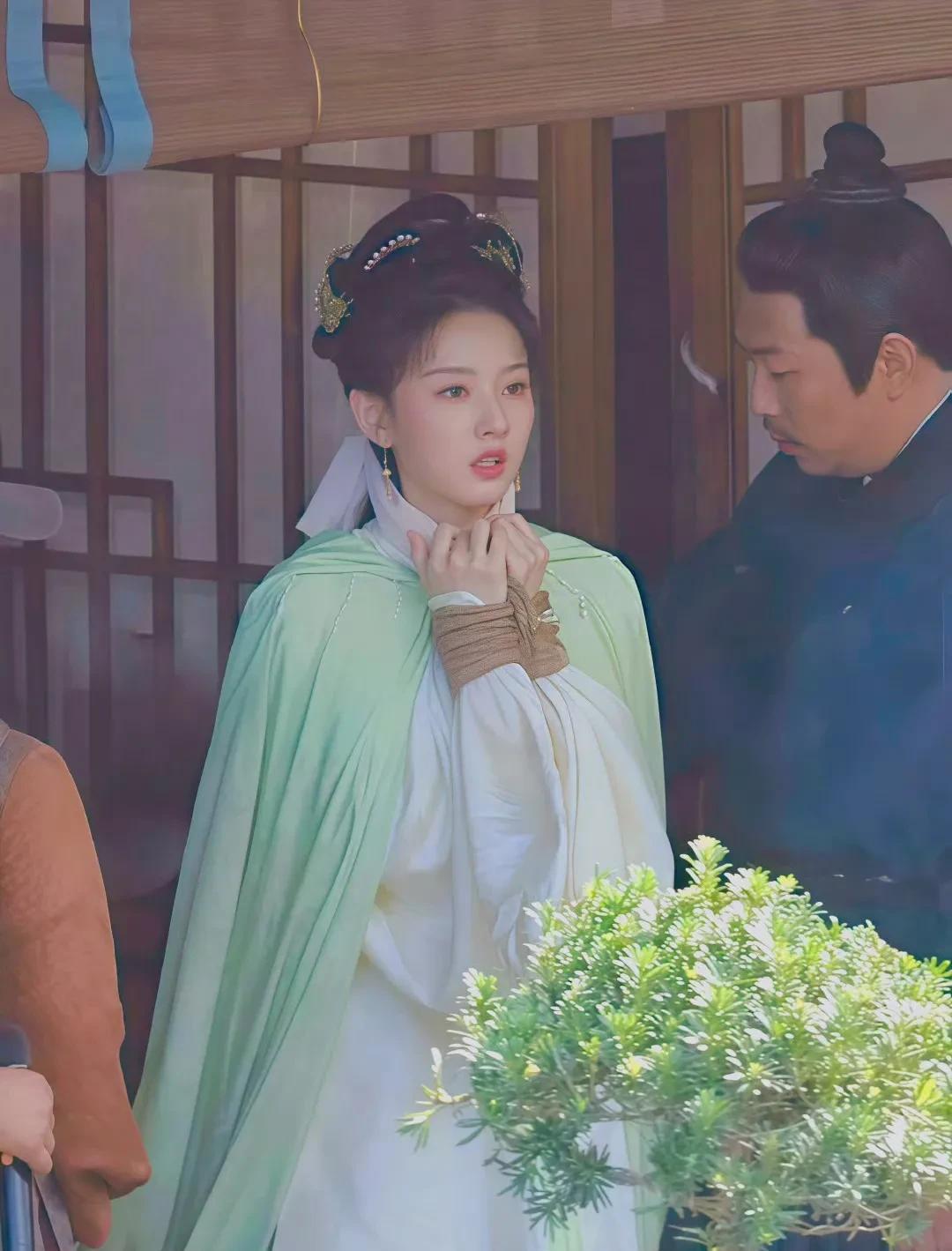 宋祖儿表妹万福路透,这熟悉的我见犹怜的感觉! 宋祖儿新剧路透,身穿一袭白衣绿袍,
