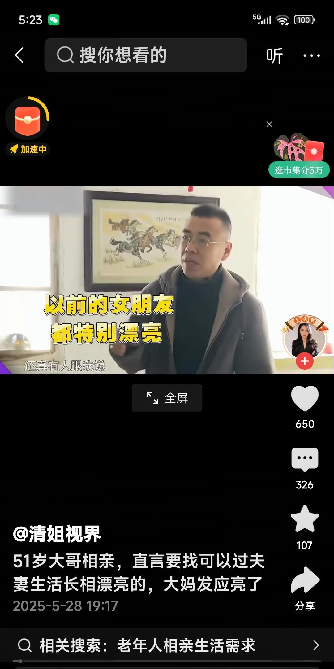 51岁大哥相亲,直言可以过夫妻生活长相漂亮的,大妈回应亮啦,以前对象漂亮,你怎么不结婚呀?网友说:章子怡刚离婚,赶紧去追,这样的男人不成熟,不知道自己几斤几两。有的人说:这男的哪来的自信?这家伙真能得瑟,你不打光棍,天理难容。这小子心比天高,命里缺斤少量,这样的男人最好离开。有的人说:这男人的长相一般,女的比他强多了,年轻时都是大美女,难道眼拙呀?大家说是这样的吗?