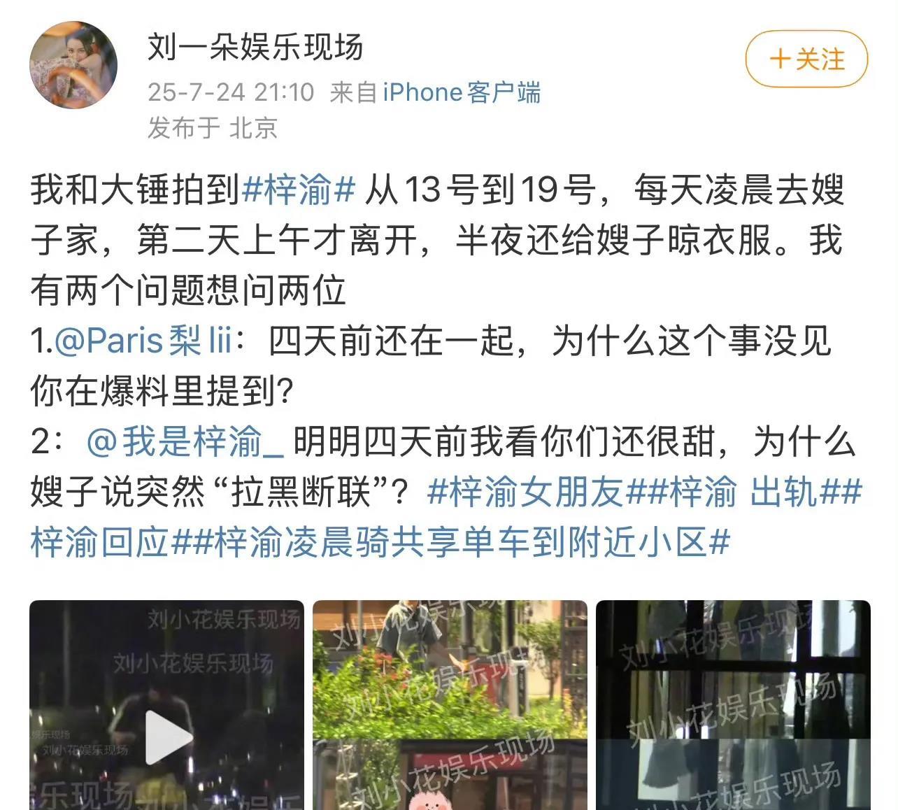 梓渝这🍉狗仔也来爆料了,说梓渝和梨四天前还在一起,不过被梨否认了。 梨承认