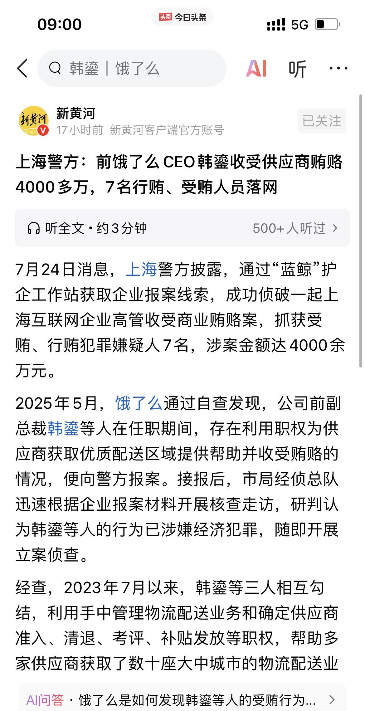 有利益交换的地方就有腐败,无论是政府领导、国企负责人还是私企高管都可能存在发生贪腐。最近几年,中国互联网大厂企业的贪腐现象愈演愈烈,而且数额巨大。 近日媒体披露,著名互联网公司饿了么前高管韩某就因4000多万的商业贿赂锒铛入狱,任何人贪念控制不住就会变成毒药,最终受到惩罚。 4月份,京东一毛姓中层负责人贪污侵占公司2000万元被抓。6月,唯品会营销副总裁冯佳路和其产品技术中心基础平台部运维总监马某在工作期间利用职务之便,长期收取供应商好处费,涉嫌职务犯罪,目前已被刑事拘留。 近年,互联网巨头京东、腾讯、阿里等企业都有巨额贪污腐败案件卷入,而且愈演愈烈,值得整个行业警醒。互联网企业发展日新月异甚至是野蛮生长,应及时健全权利和利益监管机制,防微杜渐,切实担负起大厂的企业责任和社会责任。#企业腐败# #互联网反腐#