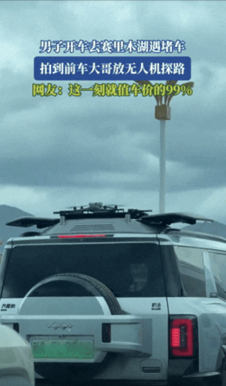“有钱就是任性!”新疆一男子在开车去赛里木湖的路上,突然堵起了车,半天都难挪动一点儿!就在这时,男子急中生智,立刻启动车上的无人机前去探探路况,等无人机飞回时,自动飞回到车顶上,而接下来的一幕瞬间让在后方观看的司机傻了眼!网友:“科技改变生活,在这一刻具象化了!” 据吉安电视报7月19日报道:新疆一条高速路上发生的事,让不少开车的人看了直呼开眼界。 事情发生在去赛里木湖的路上,那天路上堵得厉害,车子排成了长龙,半天都动不了一点,大家心里都挺着急的。 就在这时,前面一辆车上的大哥有了动作,只见他车上好像有什么东西打开了,接着一架无人机就飞了出来,嗡嗡地升上了天,朝着堵车队伍的前方飞去。 这架势,明摆着是想用无人机看看前面到底堵成啥样,路通到哪里了。 但这还不算最稀奇的,等那无人机完成任务飞回来的时候,更让人惊讶的一幕出现了:那辆车的车顶上,竟然有个专门停无人机的地方! 那地方像个小平台,无人机稳稳当当地落上去后,平台两边就自动合拢了,把无人机收得好好的。 整个过程看着就利索,充满了高科技的感觉,恰巧后面车上的司机用手机拍下了这一幕。 视频传到网上,一下子引来网友们的激烈讨论。不少网友看了都挺有感触:“这钱花得真值!堵车时候能随时知道前面情况,省了多少心焦。” 还有网友夸道:“在新疆这种地方跑长途,尤其是去看风景,能这么方便地放无人机拍拍照、探探路,这装备太实用了。” 事情挺简单,这位新疆大哥在堵车时用无人机探路,还展示了车顶自动收放无人机的装备,确实给大家提供了一个解决旅途困扰的新思路。 它让人看到,科技确实能让出行变得更方便、更有趣,尤其是在长途旅行或者遇到突发情况时。 这种实实在在的便利,才是科技服务生活的真谛。下次您堵在路上,会不会也琢磨点新办法? 欢迎聊聊您的看法。