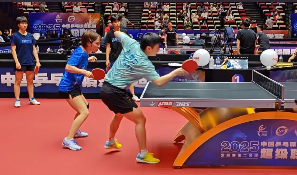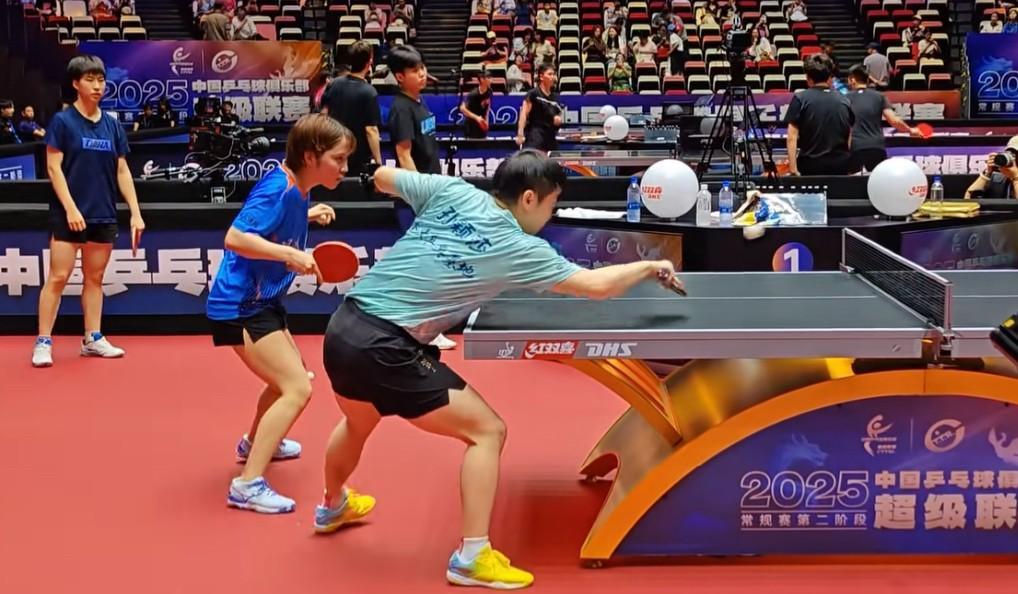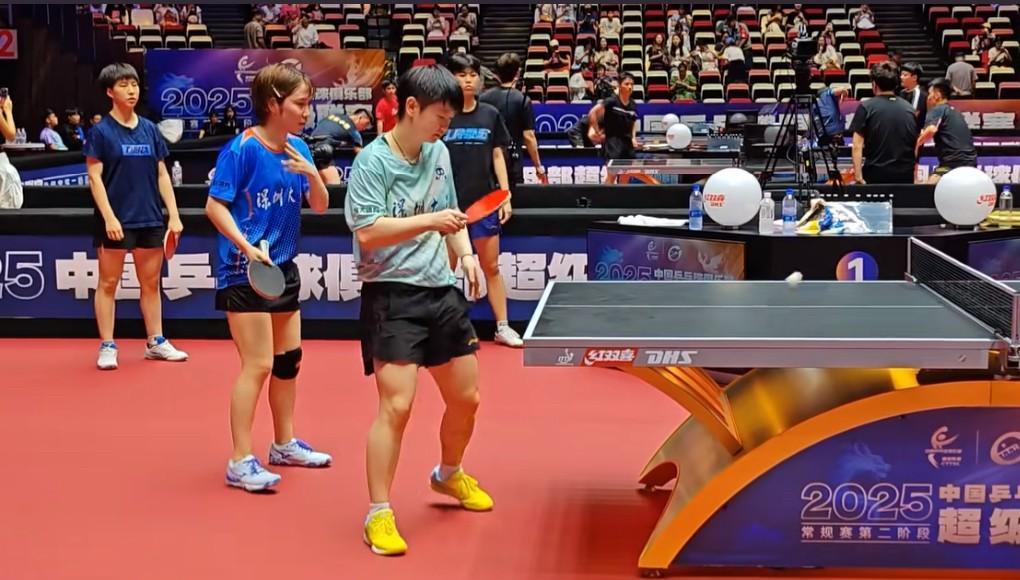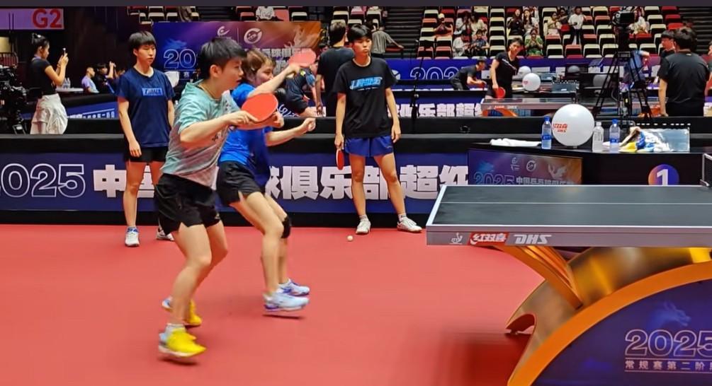 孙颖莎、平野美宇乒超赛前热身,咱就是说平野美宇乒超吃的也太好了,昨天化身小迷妹主