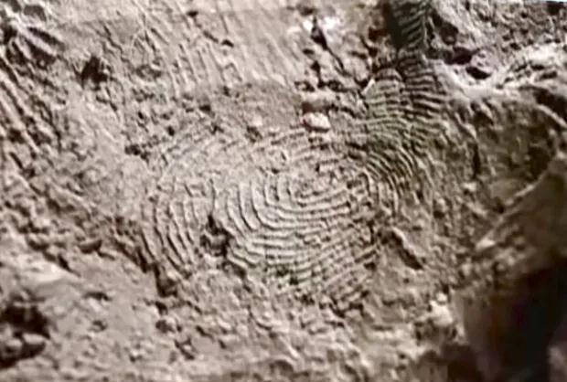 央视展示兵马俑最新发现的一枚“斗形纹”指纹。 从画面看,这枚“斗形纹”指纹,纹线